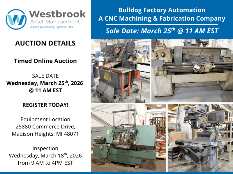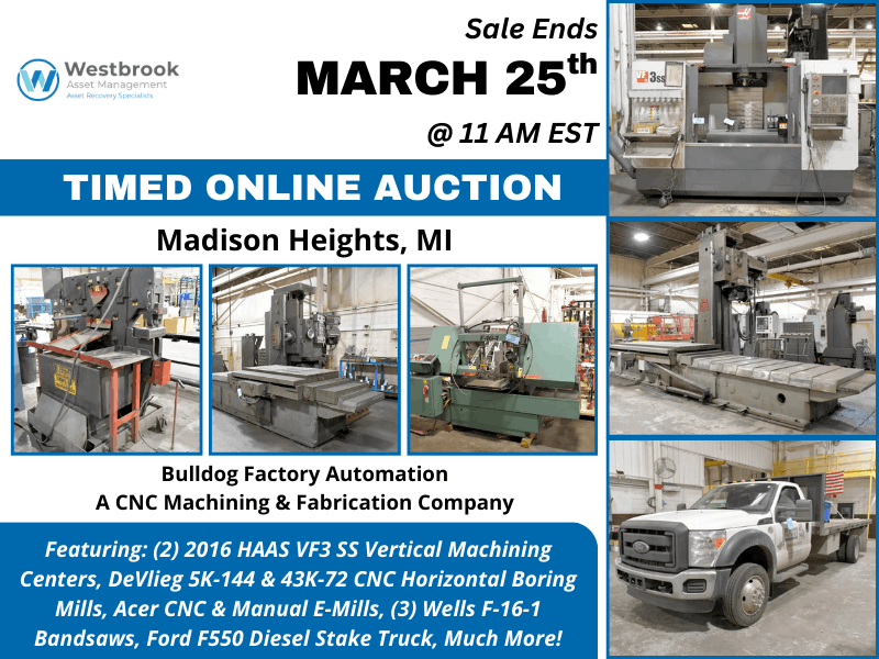 Search Our Listings183,442 Machinery & Electrical Equipment Listings as of 03/17/2026 Start Your SearchElectric Motor SearchSearch by HP/RPM/Volts/Frame or start below with a frame: Frame: Motor SearchTransformer SearchSearch by KVA/Volts or start below with the KVA: KVA: Transformer SearchWanted or For SaleLet our network of dealers find the machine you need or turn your idle assets into cash.Send free e-blast to dealers now! Featured Auctions & Liquidations & Machinery Deals! Sign up for Auction Alerts 3 ENDS 3/18Online AuctionStrategic Plant Closure of Cubic Corporation – CNC Machinery Baja California Norte, MexicoFeaturing: AMADA ENSIS-3015 AJ CNC Fiber Laser Cutting System, AMADA 110 Ton 8 Axis CNC Hydraulic Press Brake, AMADA RG-100 Hydraulic Press Brakes, AMADA EM-2510NT CNC Turret Punch Press, HAAS ST-30Y CNC Horizontal Lathe, HAAS ST-10 CNC Lathes, HAAS Vertical Machining Centers, 2015 CITIZEN CINCOM L20E-2M8 CNC Swiss-Type Lathe, KUHLMEYER Belt Grinding Machines, Trucks, Air Compressors, Welders, Much More!View Auction 3 ENDS 3/24Timed OnlinePremium Metal Fabrication, Prototyping & Engineering Facility Tampa, FLFeaturing: 2019 & 2017 MAZAK OPTIFLEX 3015 FIBER III 8 kW Lasers, 2022 SENFENG SF6020NT 6 kW Pipe Fiber Laser Cutting Machine, 2020 MESSER MPC2000 Cutting System, 2020 FICEP CNC Angle Punch & Shear Line, 2023 ACCURPRESS ACCELL 250 Ton CNC Brake, 2012 ACCURPRESS 150 Ton CNC Brake, NEW WILA Brake Tooling, HAEGER Insertion Machine, PIRANHA 110 Ton Ironworker, HYD-MECH Band Saws, Welders, Free-Standing Cranes, Forklifts, Much More!View Auction 3 ENDS 3/25Online AuctionAccurate Sheet Metal – CNC Fabrication Shop Closure Mukilteo, WAFeaturing: 2017 CINCINNATI 175PF+10 175-Ton CNC Hydraulic Press Brake, 1992 AMADA FBD-8020E 80-Ton CNC Hydraulic Press Brake, HAEGER Insertion Presses, 2018 DMG MORI CMX1100V CNC Vertical Machining Center, AMADA RG-80 CNC Hydraulic Press Brake, 2014 WIEDEMANN MURATEC M2044TC CNC Turret Punch Press, WIEDEMANN CENTRUM 2000 CNC Turret Punch, ROUSSELLE OBI Punch Presses, CINCINNATI 1410 Shear, NISSAN 5,000 Lb. Cap. Forklifts, Much More!View Auction 3 ENDS 3/25Timed OnlineBulldog Factory Automation – CNC Machining & Fabrication Co. Madison Heights, MIFeaturing: (2) 2016 HAAS VF3 SS Vertical Machining Centers, DeVlieg 5K-144 & 43K-72 CNC Horizontal Boring Mills, Edwards Jaws IV 100 Ton Capacity Hydraulic Iron Worker, Acer CNC & Manual E-Mills Vertical Milling Machines, (3) Wells F-16-1 Bandsaws, 2012 Ford F-550 Super Duty 16′ Diesel Stake Truck, LeBlond Regal Engine Lathe, HTC Model 375E Hydraulic Power Squaring Shear, Drill Presses, Miller Welders, Much More!View Auction 3 ENDS 3/26Timed Online300,000 SF Late Model Candle Production & Packaging Plant Maple Grove, MN500 LOTS POSTED!Featuring: (6) All Late Model Complete Molten Candle Lines, Herrhammer Wicking Machines, Cap Torquers and Snap Cappers, Accraply Pressure Sensitive Labelers, Super Clean Conveyor, 20,000 Gallon Stainless Steel Tanks, Mix Tanks, Boilers and Support, Much More!View Auction 3 FinancingFlexible Financing for Your Next Equipment PurchaseEquipment Leasing Programs Equipment is at the core of many businesses. It is essential in providing high-quality services that your clients expect from you. We understand that as time goes on your equipment might break or become outdated and it could be stressful to replace. Our finance professionals are here to alleviate that pain and allow you to get the equipment you need without breaking the bank.Call for a Free Quote Today!Get a Quote TodayMost Popular CategoriesMachinery & Equipment Engine Lathes Bed & Knee Milling Machines Hydraulic Presses CNC Lathes & Turning Centers Boring Mills Machining Centers Electrical & Power AC/DC Motors Diesel Engines Diesel Generators Three Phase Transformers Circuit Breakers Boilers Listings Just AddedMachinery & EquipmentFeatured Wheel LoadersAM Parts Supply Doral, FLFeatured Tooling and Accessories - MiscellaneousDowntime Rebuild Llc Cincinnati, OH Welding PositionersD & D Industries Inc Monclova, OHElectrical & PowerFeatured Diesel GeneratorsPower USA Vet Llc Spirit Lake, IDFeatured Squirrel Cage AC Electric MotorFlynn Drilling Company Troy, MO Squirrel Cage AC Electric MotorBailey Surplus Santa Rosa, FL Recent Dealer Inquiries Woodworking MouldersRT Machine Quote was submitted 7 minutes ago Circuit Breakers - Parts, Accessories and Trip UnitsNational Switchgear - Parts Quote was submitted 7 minutes ago Marking Machines (Including Laser Markers)SCC Machinery Inc Quote was submitted 8 minutes ago Woodworking MouldersChaska Cabinetry & Millwork Quote was submitted 8 minutes ago Uncoilers and Centering Coil ReelsYoder Machinery Sales Quote was submitted 9 minutes ago Gas Turbine GeneratorsWestern United Industries Quote was submitted 17 minutes ago Industry NewsCapital Equipment Moves at Capital SpeedCapital equipment moves at capital speed, which is typically… not fast at all. It moves at the ... Read moreWhy Reshoring is Driving Equipment DemandFor years, reshoring was discussed more as an idea than a reality. Companies talked about bringing production ... Read more2026 Outlook: Chip Expansion Fuels Practical Equipment DemandThe chip demand story for 2026 is not really about AI hype. It is about capacity and ... Read more