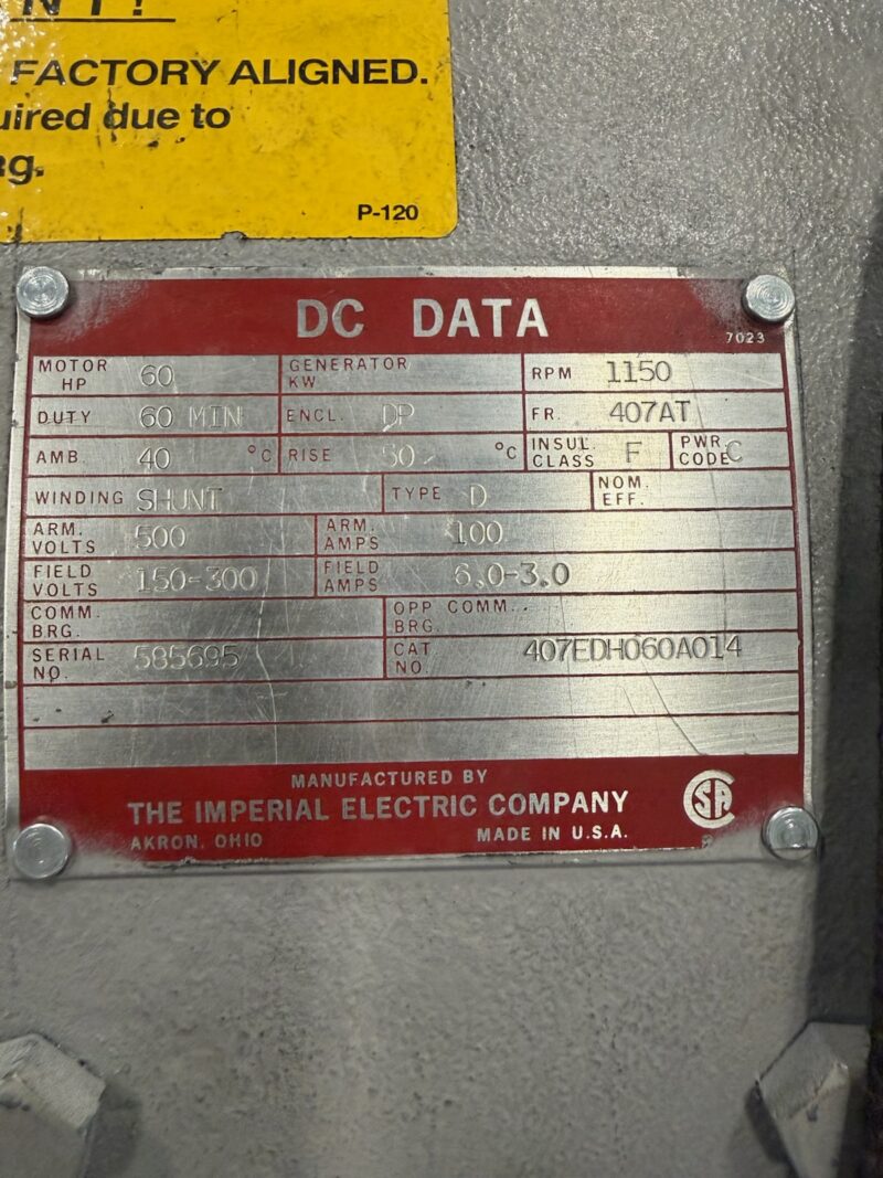 Looking for a suitable replacement for the 60hp DC motor shown on the attachments. New, rebuilt or EOK. Customer is down so please advise ASAP!