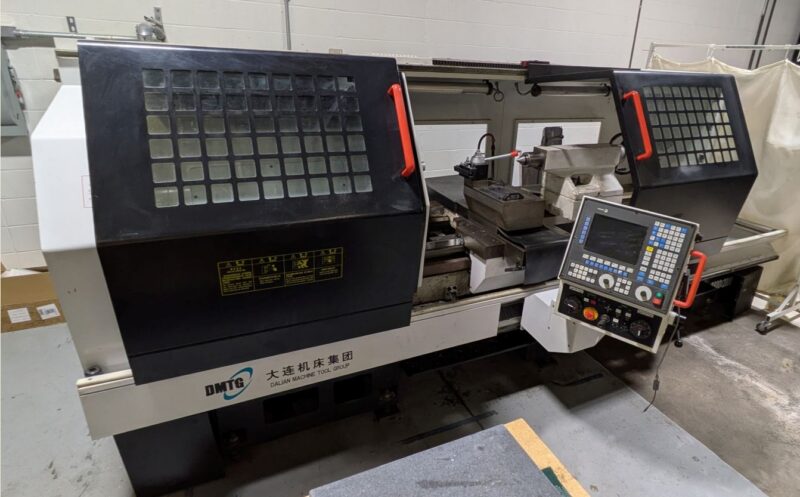 Description: DMTG Model CKE6180Z 31" x 79" (800 x 2000) Flat Bed CNC Lathe, Fagor 8055TC CNC Control, 40 – 1,000 RPM, 15 Hp, 16" 3-Jaw Chuck, 20" Face Plate, Shars Tool Post, 6-Position Vertical Turret, Tail Stock, Steady Rest, Coolant System, Manual, 3.9" H.I.S. Extended X-axis, New 2011.
