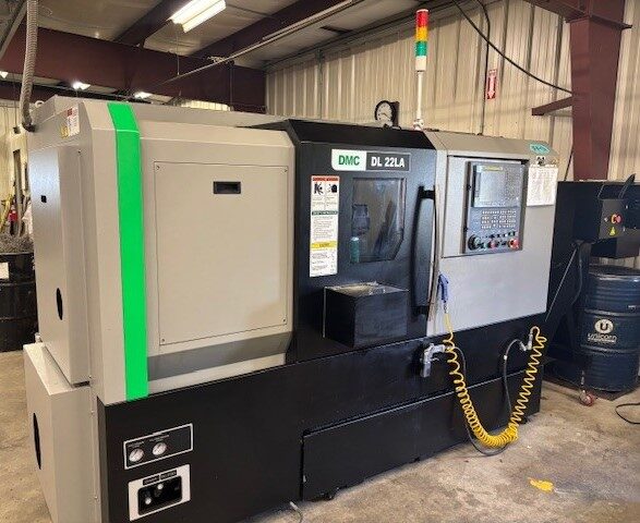 Description: DMC Model DL22LA CNC Lathe, Fanuc 0i-TF Plus 2-Axis Control, 21.65" Swing, 21.26" Turning Length, 13.78" Turning Diameter, 2.56" Bar Capacity. 4,000 RPM, 20 Hp, 8" 3-Jaw Power Chuck, 12-Station Servo Turret, Programmable Tail Stock & Quill, Box Ways, Tool Presetter, Chip Conveyor, Parts Catcher, New 11/2022.