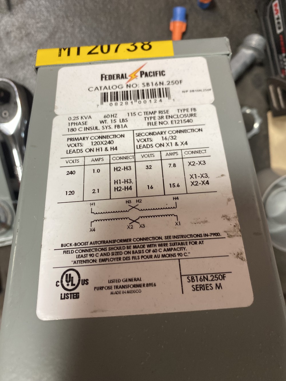 0.25 KVA 120/240 Primary, 16/32 Secondary, 1 phase, Dry Type Transformer, Ready To Ship, New