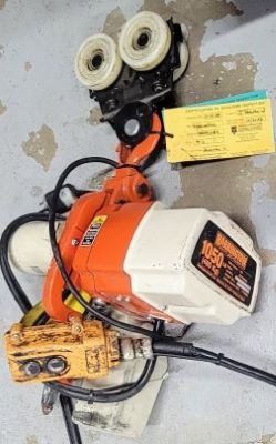 DEMAG (USED) 1100# FREE STANDING WORKSTATION CRANE, 18' APPROX SPAN BETWEEN POST, 18' APPROX RUNWAY TRAVEL, 8.5' APPROX HEIGHT UNDER HOOK, 156" APPROX OVERALL HEIGHT, 16' APPROX TRAVEL OF HOIST TROLLEY, 4-POST DESIGN, - 1050# HARRINGTON CHAIN HOIST, - 110 VOLT.