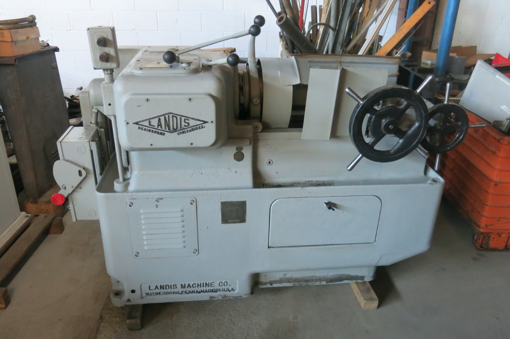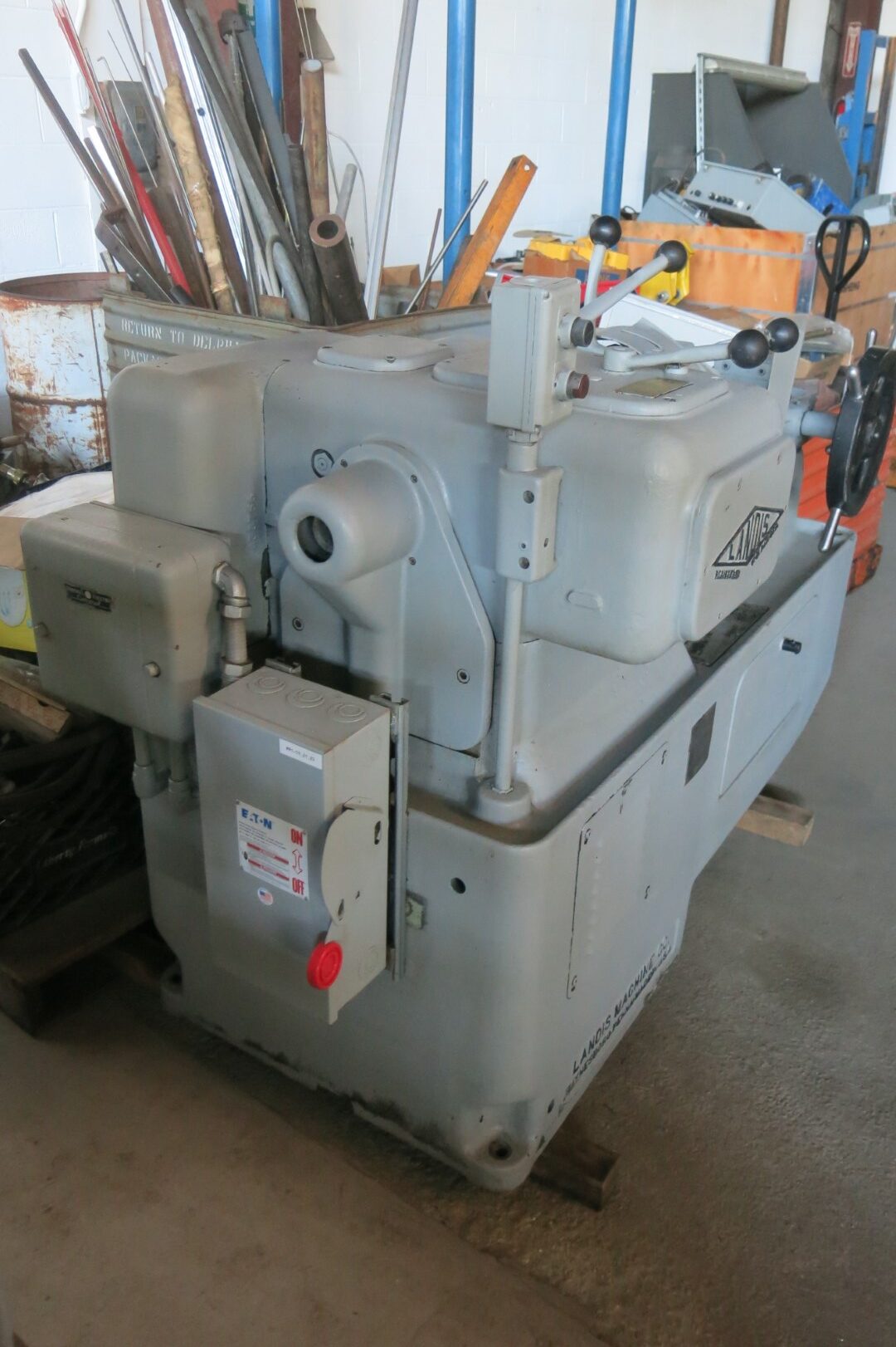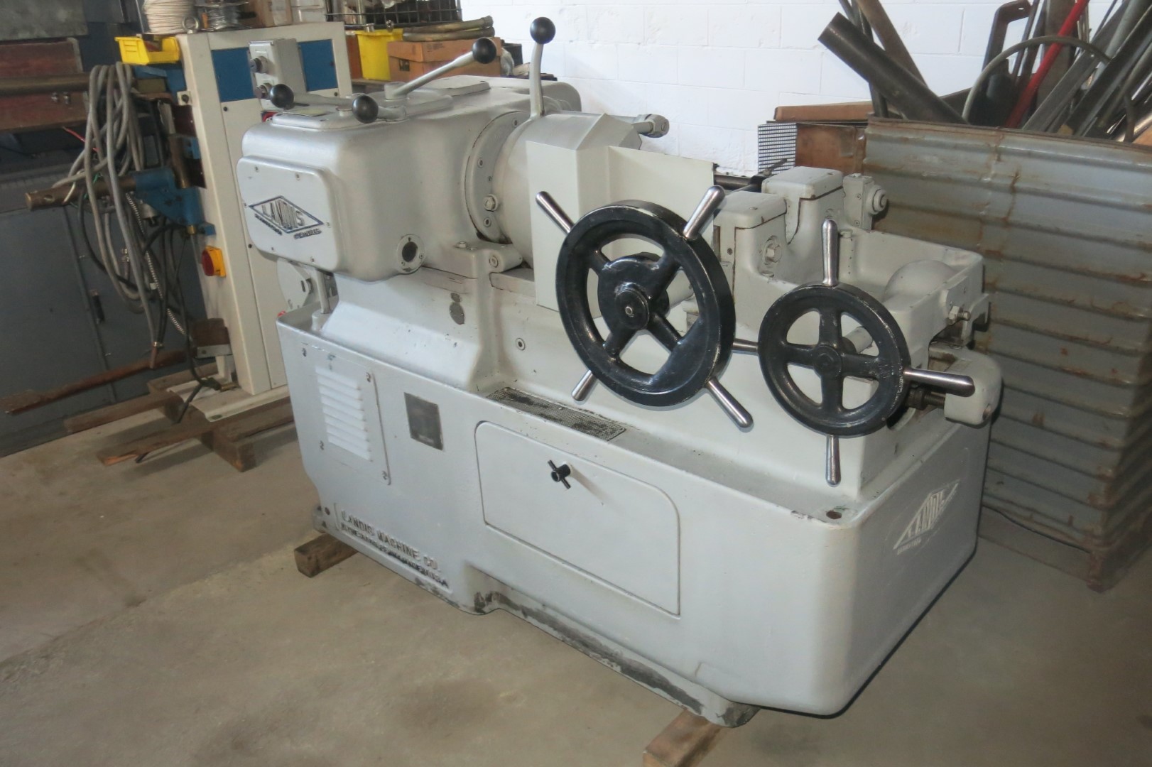 Product, LANDIS 1 1/2″ BOLT & ROD THREADING MACHINESERIAL# 1 1/2 L926, CAPACITY- 1 1/2″, -LANCO 12r DIE HEAD, -GEARS- 36-45-(2) 72-84-108-196, -GEARS FOR BACK OF SPINDLE- 36-48, -(3) SETS OF CHASER HOLDERS COVERING 1/4″ – 1 1/2″, MACHINE HAS NEWER ELECTRIC INCLUDING MOTOR, FUSIBLE ...more