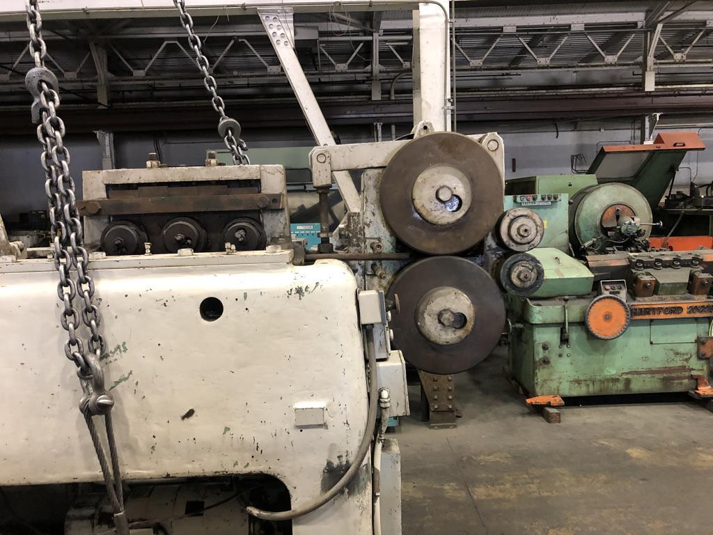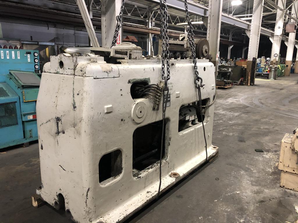Width of Roll dies. 60", Maximum roll die dia. 44", Maximum Length rolled section. 82", Weight, approx. 160,000#, Air Clutch, Side Shear, Works 1 x 12" to 8" RCS; 100 ton working pressure, Inboard Type, 300 HP G.E Induction Electric Motor; 568 Frame, Total weight, per catalog, is 135,000 lbs., We estimate the Base ...more
