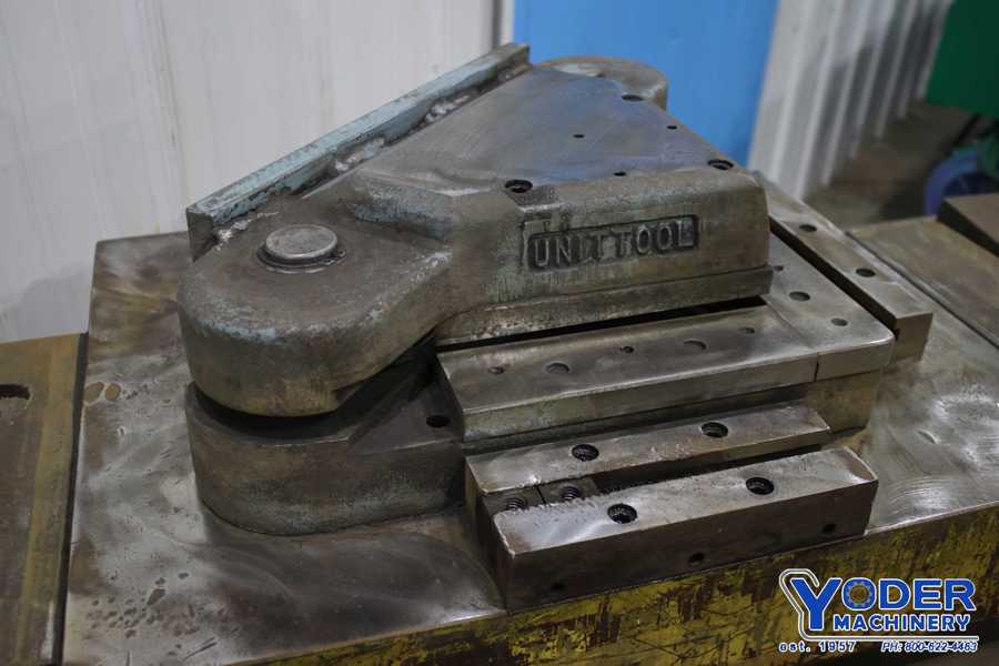 EUROMAC 220/6S Notching Machine from 1995. s hydraulic power, variable angle 30 to 140, automatic blade gap adjustment, Meehanite steel casting, and engraved brass scales. 5.5 HP motor, 3-phase elect., 16-gallon oil tank. Approx. 2,006 lbs. Ideal for precision cuts., Brand: Euromac, Model: 200/6S, Variable angle:30 to ...more
