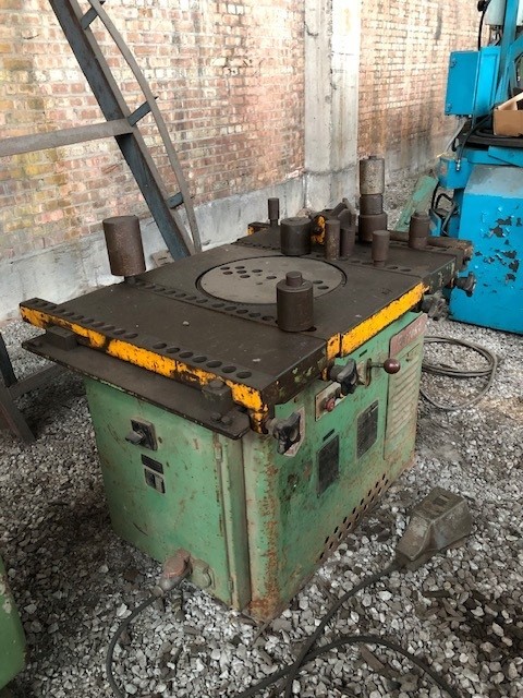 SCHNELL P/60 TABLE BENDER, BENDING CAPACITY 1 DIAMETER 50 MM (#14), 6 DIAMETER 20 MM (#6), PLATE REVOLVING SPEED 12 RPM, INSTALLED POWER 14 KW, MACHINE'S WEIGHT 1250 KG (2760 LB), MACHINE DIMENSIONS+ 157X104X87(H)CM (62"X41"X34"H), WITH PC TOUCH SCREEN AND CONTROLS.