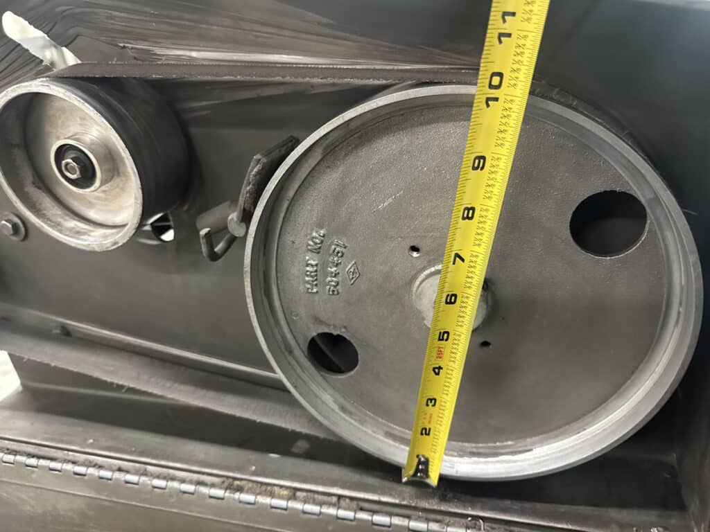 BELT SIZE --------------------------- 2 in WIDE X 44 in LONG, MOTOR ------------------------------- 1/2 H.P., WIRED ------------------------------- 115V AC/ 1 PHASE/60 HZ, MOTOR SPEED ------------------------- 1725 RPM, WEIGHT ------------------------------ 125 LBS. (APPROX.):ON/OFF SWITCH, DIRECT DRIVE SUBJECT TO ...more