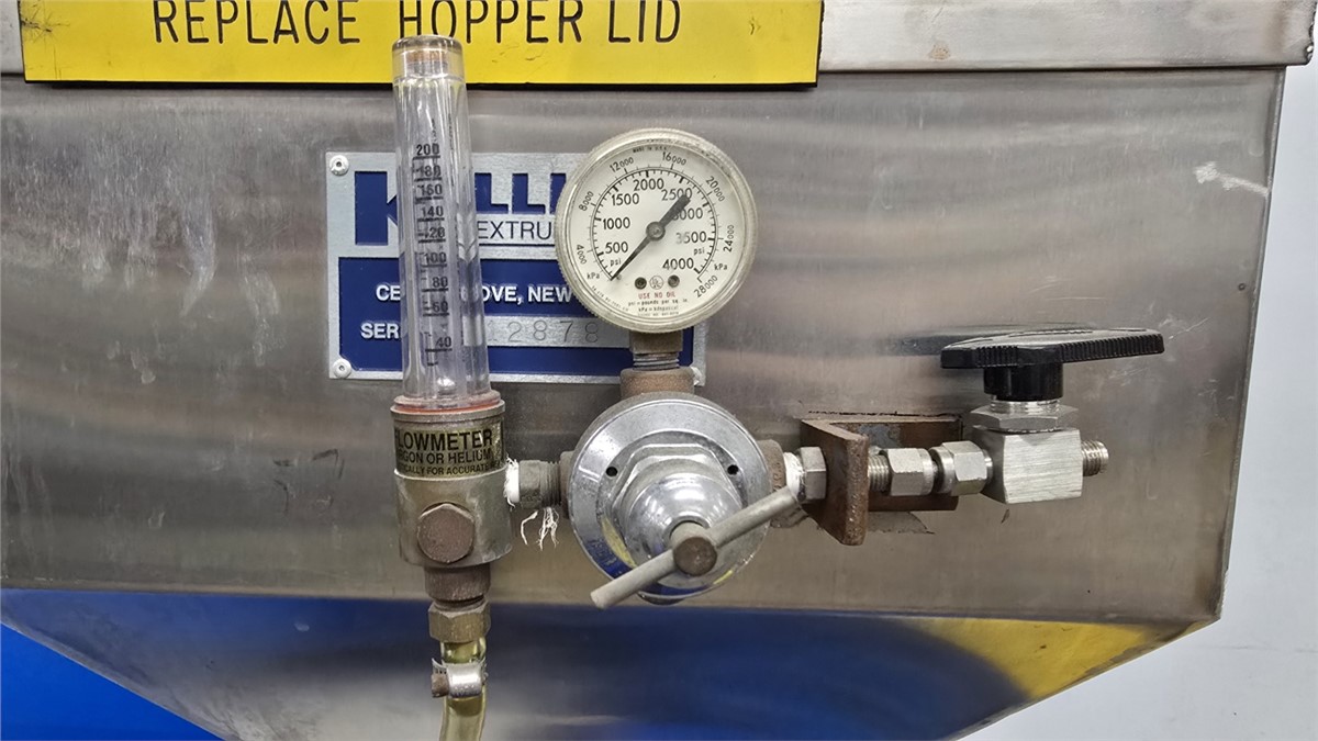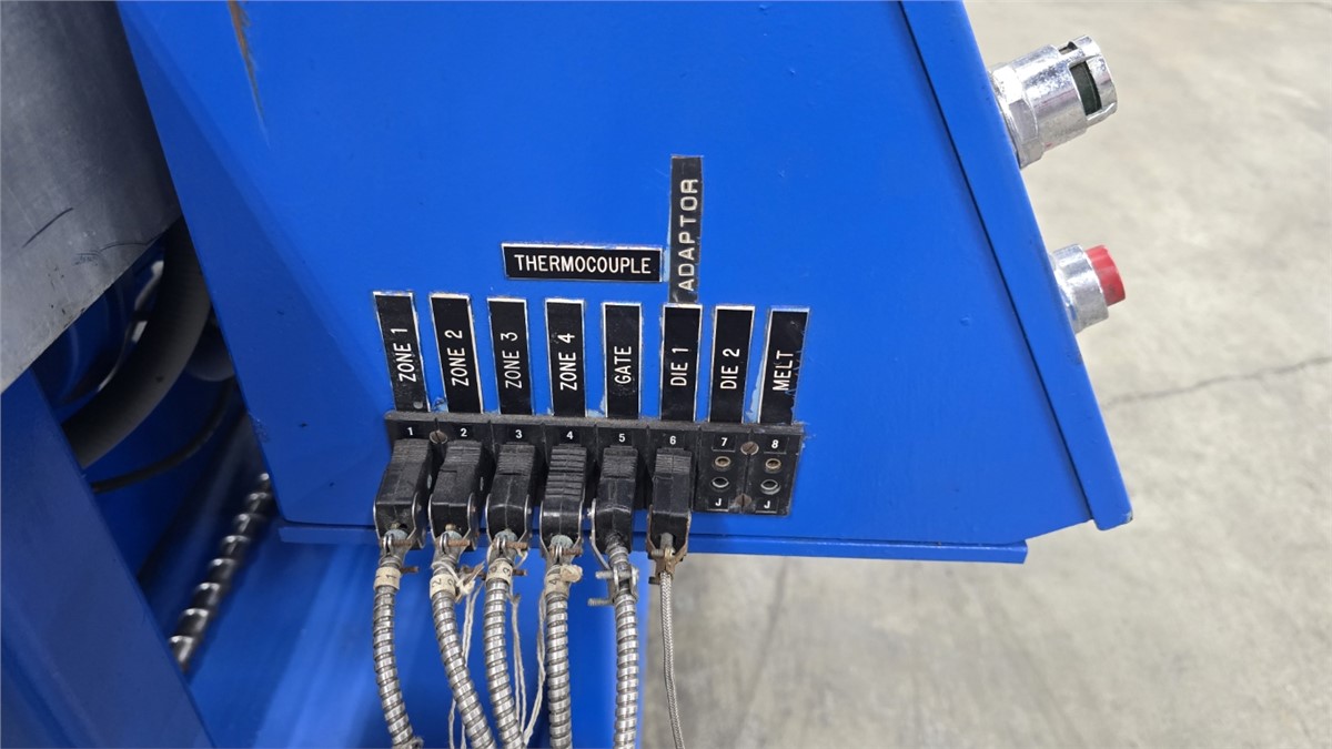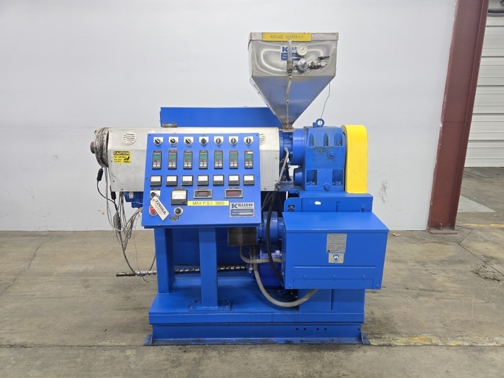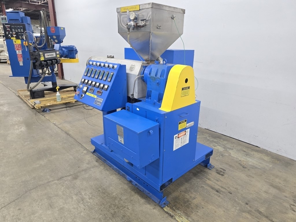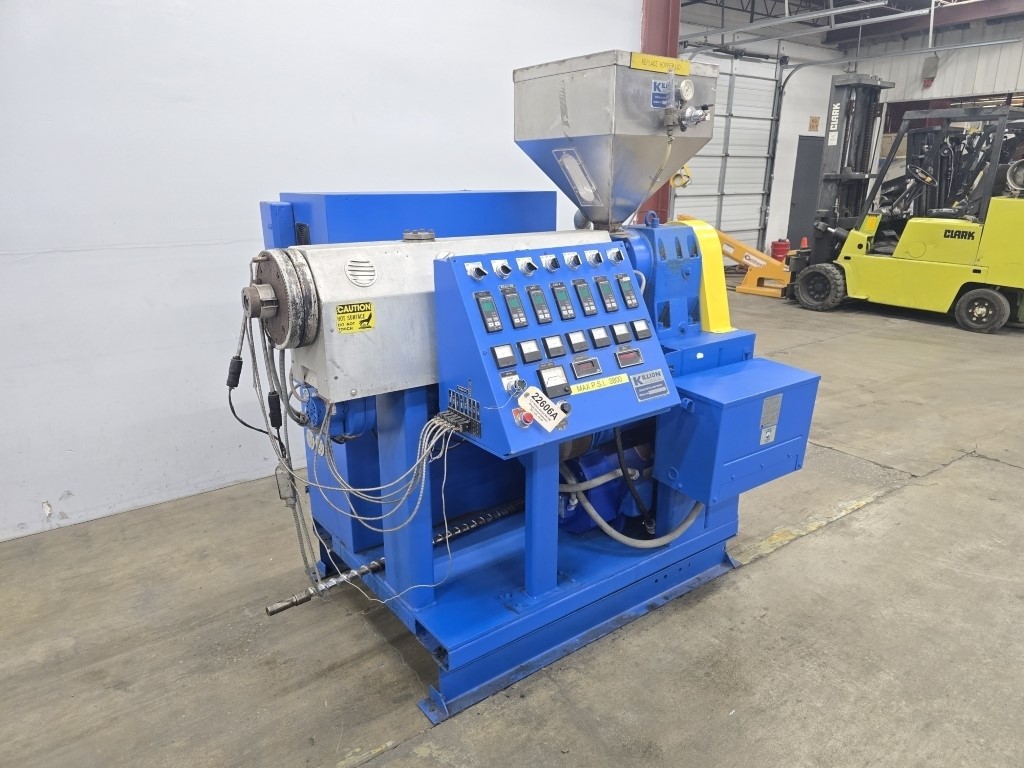 1.5" Killion #KN-150, single screw extruder, 30:1 L/D, 15 HP DC motor w/blower, 4 barrel zones, air cooled Manufacturer: Killion Model: KN-150 Dia.of Screw: 1.50 Stock # 22606A Request a Quote 10 For Sale by Arlington Machinery Surplus Record Dealer Since 1998 Contact Seller Lake Zurich, IL Chris / Garrett 847-95...> Show Seller's Phone Number 847-957-9731 Let the seller know you found their listing on Surplus Record! View More Arlington Machinery 's ListingsDescription DescriptionUsed 1.5" Killion Single Screw Extruder, Model KN-150, 30:1 L/D, 15 HP4 Barrel Zones (Plugged), 3 Downstream Zones, Air CooledStandard Single Stage Screw48" Centerline Height2.5" x 3" Feed Throat w/ Slide PlateInfeed Height: 74"15 HP DC Motor w/ Blower1750 RPM500 Volt, 26.5AFrame: 257Shunt Winding, Drip-Proof EnclosureKoellmann Gearbox Rated For 16 HP, Size PEZS 20, S/N: 71093728/11Gear Ratio: 11.2:1, 1.0 Service FactorInput: 1400 RPM, Output: 127 RPMSpectrum I 2200-8420C DC Drive Package, S/N: 169058-03-15-ERAC Input: 460/3/60, 28 Max AmpsDC Output: 0-500 VDC, 34 Max AmpsField Output: 300 VDC, 6 Max AmpsEurotherm 808 Controllers, Dedicated On/Off Toggle Switches For Each Zone, Analog Simpson Amp Gauges, Start/Stop Buttons, Speed Pot, Digital RPM Gauge, Digital Pressure ReadoutMachine Is Wired For 460VMachine Nameplate: 460/3/60, 60 FLAS/N: 12878Approximate Dimensions: 73" L x 56" W x 74" HIncludes Hopper, 15 KVA 480V Primary To 240/120V Secondary Type 2 Enclosure Acme Transformer For Controls & Auxiliaries, Extruder Has Discharge Flange For Mounting Die And Adaptor**Die Head/Tooling NOT INCLUDED**Quoted And Sold As-IsJust Purchased Additional Pictures Coming Soon Request More Information from SellerGet Your Price from Arlington Machinery! "*" indicates required fieldsName*Company*Email* PhoneZip / Postal Code*QuestionMake an OfferRequests Send me a shipping quote I am interested in financingSend Copy Email me a confirmation of this inquiryBuyer Protection Use our partner Escrow.com to buy or sell equipment safelyBuyer Protection Send me info about buyer protectionThis field is hidden when viewing the formDealer Email Buyers Who Viewed This Listing Also Viewed … 1.5" Killion #KN-150, extrusion line, 24:1 L/D, 15 HP, electric heat, air cooled, 1750 RPM, 11.2:1 gearbox, Stainless Steel vacuum tank, 130" cooling tank, 1991Category: Extruders and Extrusion LinesSeller: Federal Equipment CompanyLocation: Cleveland, OH Mfr: KillionModel: KN-150Year: 1991Used 1.5" Killion extruder, model KN-150, 24:1 l/d, electrically heated, air cooled barrel, jacketed feed section, 15 hp, 1750 rpm dc motor, 11.2:1 gearbox ratio, Cross head coating die, 115" Killion vacuum tank, model PVT2-6-1-1, stainless steel construction, approximately 6.5" x 6.5" cross section, 130" Killion ...more 1.5" American Kuhne #AK150, extruder, 30:1 L/D ratio, 42" centerline, rectangular feed throat, Barber Coleman 7EF temp controller, 2004Category: Extruders and Extrusion LinesSeller: Arlington MachineryLocation: Lake Zurich, IL Mfr: AmericanModel: AK 150Year: 2004Used 1.50” American Kuhne Extruder, 24:1 L/D Ratio 17.54:1 Koellmann UNEX 1.1 Gearbox, Rated To 15 HP 42” Centerline Rectangular Feed Throat Air-Cooled Barrel, 4 Barrel Zones, 4 Die Zones Barrel Clamp Includes Screw 10 HP Marathon Blackmax Motor With Yaskawa F7 AC Inverter Drive 60 AMP Main Disconnect ...more 1.5" UFS United Feed Screws, cold feed rubber extruder, 20:1 L/D, 14.5:1 G/B ratio, forced lube systemCategory: Extruders and Extrusion LinesSeller: Soberay & Sons LtdLocation: Cleveland, OH Mfr: United Feed ScrewsItem 6006-1 - One (1) UFS United Feed Screws 1.5" 38mm Cold Feed Rubber Extruder, 20:1 L/D, 14.5:1 G/B ratio, Siemens 20 HP 1755 RPM 460 VAC motor, AC VFD variable frequency drive, control panel, clamp assembly, forced lube system, individually driven roller feeder assembly, feed roller external bearings and ...more 1.5" Davis Standard #150IN-DS-20, Single Screw Extruder, 24:1 L/D, Vented Barrel, 50 HP Gearbox, 42" centerline, 152 RPM screw, 1984Category: Extruders and Extrusion LinesSeller: Aaron Equipment CoLocation: Schaumburg, IL Mfr: Davis StandardModel: 150IN-DS-20Year: 1984used- davis standard 1.5" extruder, model 150in ds-20. 24:1 l/d vented barrel at a 42" centerline. davis standard 6.53:1 gearbox rated for 50 hp with a service factor of 1.25 for a 152 rpm screw speed. gearbox was manufactured in 1998. non-tagged motor is driven by a reliance model gv3000 a/c drive. includes unitized ...more 1.5" Davis Standard #1.5", non vented air cooled extruder, 28:1 L/D vented barrel, 15 HP DC motor, 1989Category: Extruders and Extrusion LinesSeller: Perry Videx LLCLocation: Hainesport, NJ Mfr: Davis StandardModel: 1.5Year: 1989Used 1.5" Davis Standard 28/1 L/D Non-Vented Air Cooled Extruder., New in 1989. 6.53/1 gearbox ratio. Gearbox is belt driven through a 15 hp DC motor. Includes temperature control panel with motor drive., Previously used as co-extruder for laboratory sheet extrusion line., DAVIS STANDARD 1.5".Share × "*" indicates required fieldsYour Name*Your Email* Recipient's Email* Note to Recipient