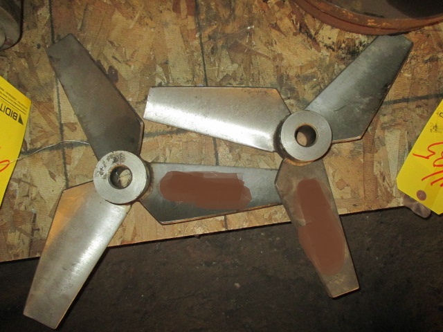 Vertical Mixer/Blender. Stainless Steel. Shaft: 36 in; blade: 12 in, diameter. Pneumatic piston to raise and lower blades. Roller conveyors to receive containers. Delta power hydraulic motor, Model DM23, with circuit pak hydraulic power unit. Transmission: 1 hp. Gear motor: 220 V. Output: 219 rpm. Overall dimensions: ...more