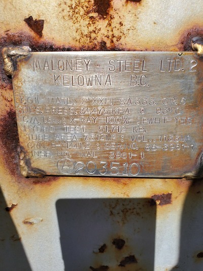 Available for redeployment check, this indirect line heater (Serial No: 86-3961-1) from Maloney Steel features a length of 20 ft and a maximum temperature rating of 200°F. Built in 1986, it has a maximum pressure capacity of 4986 psi and is designed for sweet service. Please note that it requires refit and new BMS, as the current operational status is disconnected. Located in Fox Creek, AB, Canada.
