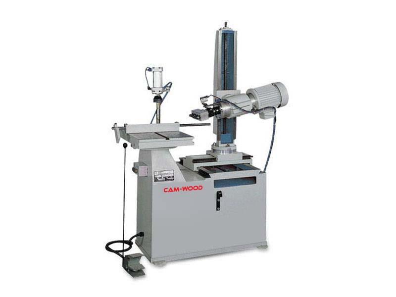 CAM-WOOD BR-50 Universal Boring MachineFeatures & Specifications: -- 3 HP Pneumatic Universal Boring Machine, all adjustments feature an index plate for accurate and convenient reading, workplace clamping. -- Vertical Base travel, 24". Horizontal Base travel 12". -- 0" - 4" Spindle stroke, 7/16" - 14-thread screw shank, 1/2" max. bit capacity. -- Table Size: 15" x 22". -- Complete with: Air operated overhead hold-down clamp and foot pedal operated drill cycle. -- Drill Head can be swiveled 360 and Optional Multi-Spindle drill heads available.