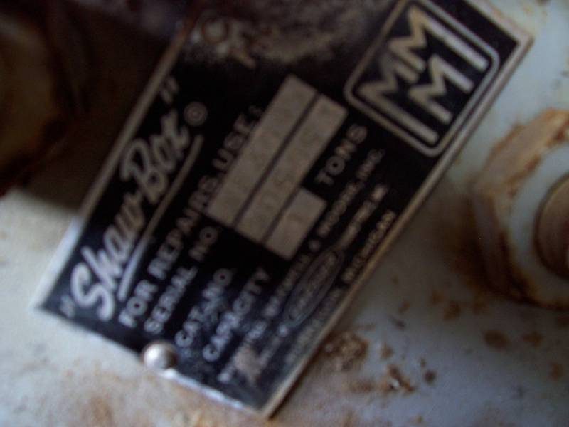 MAKE: SHAW BOX(MANNING MAXWELL & MOORE)S/N: AP3085CAT#: 905053CAP.: 1 TONPRICE: $100.00***SPECIFICATION SHOWN ARE TO BE USED AS A GUIDELINE ONLY. IT ISTHE CUSTOMERS RESPONSIBILITY TO CHECK FOR SIZE AND FEATURESBEFORE PURHCASING. WE WILL NOT BE RESPONSIBLE FOR ERROR OROMISSIONS.***
