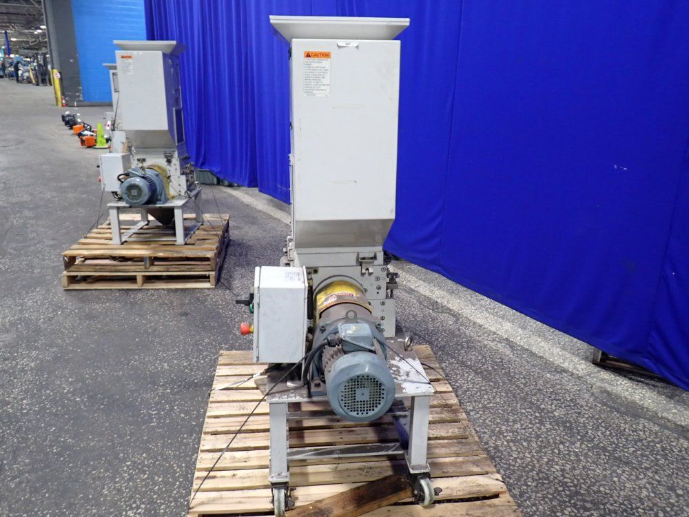 10" x 12" Nelmor, 10 HP, 3 knife solid rotor, bin discharge, casters, tray feed (30 available)