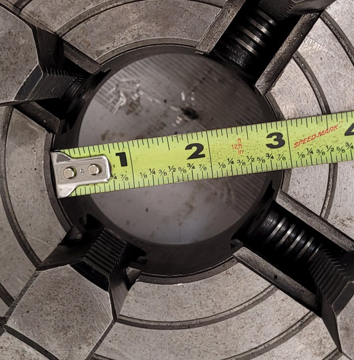Spec Sheet:, 10 4 Jaw Buck Lathe Chuck D1-6, USED, Brand: Buck, Lathe Chuck, MEASUREMENTS/APPROX., Overall Diameter: 10, Bore/Hub Diameter: 2-3/8in, Jaws: 4, D1-6 Lathe Chuck Back Plate, Pins: 6,.875 each, Chuck Key included!.