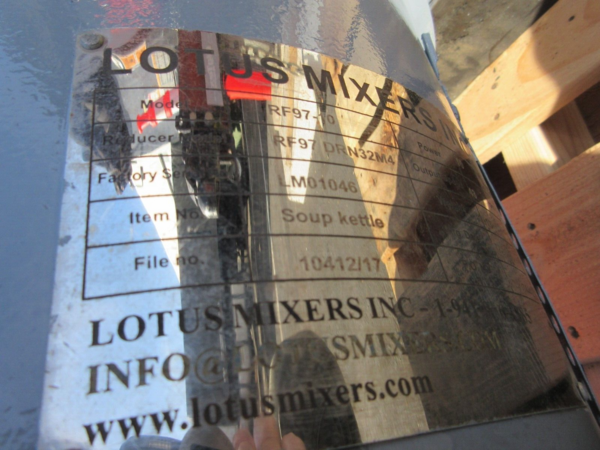 , used 10 HP Tote/Drum Mixer with pneumatic stand to raise and lower. Motor is 10 HP, 230/460 volt, 1160 rpm. Stainless Steel Mixing shaft is 25.5" and 45" blade to the motor. From mixing blade to top of motor is 68". Mixing blade is 8" Dia. Stand is stainless steel and 9' overall height. Base is 40" wide x ...more