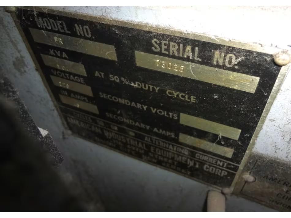 MODEL #: FTC, SERIAL #: 1526, 10 KVA, 20" THROAT, 550 VOLTS, 60 CYCLES, MAX - MIN SRC VOLTS 1.6 -2.5, APPROXIMATE DIMENSIONS: 3' LR x 5' FB x 6' TALL, GOOD CONDITION.