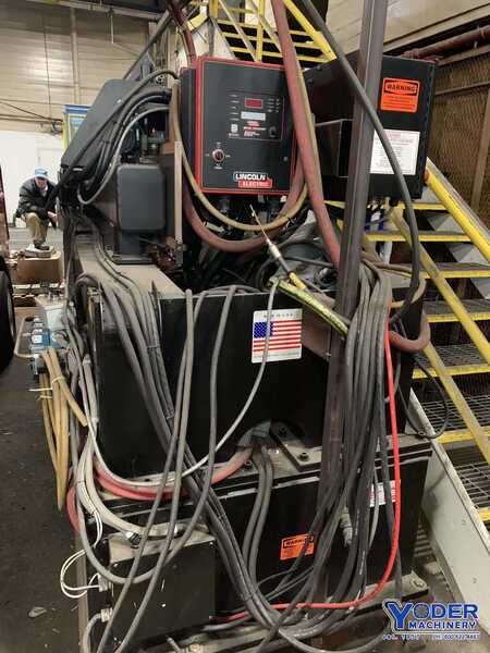 CYLINDER SEAM WELDER. 10' FLAT PLATE, WELDING CLAMPING LENGTH. 120", INSIDE DIAMETER. 20" MIN, OUTSIDE DIAMETER. 54" MAX, CLOOS MIG WELDING PACKAGE INCLUDES:, GLC 503 QUINTO POWER SUPPLY, CK 78 DISD CONTROL, *HYDRAULIC TILTING MANDREL W/POWERED ROTATION TO CHANGE FROM, FLAT PLATE TO CYLINDERS., (2) ROLLER TOP HYD ...more
