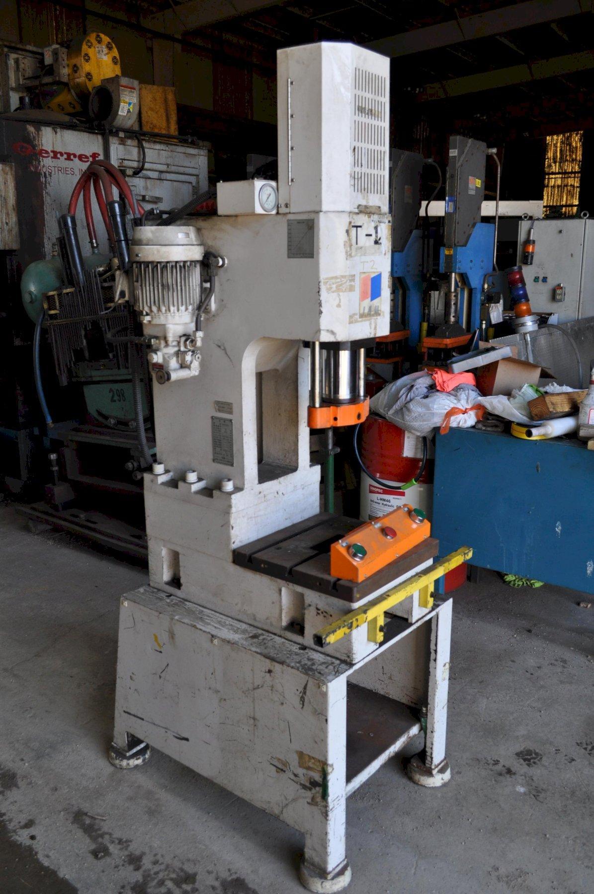 SERIAL. 13210, MODEL. GC10C022C29C15A68S06, CAPACITY. 10 TON, STROKE. 0" TO 12" MAXIMUM, OPEN HEIGHT. 24", CLOSED HEIGHT. 12", AREA OF BED. 16" X 21.5", BOLSTER. 16 X 21.5 X 2", DEPTH OF THROAT. 12", DIAMETER OF RAM. 2", RAM SPEED ADVANCE. 190 IPM, RAM SPEED PRESSING. 190 IPM, RAM SPEED RETURN. 260 IPM, PRESSURE ...more