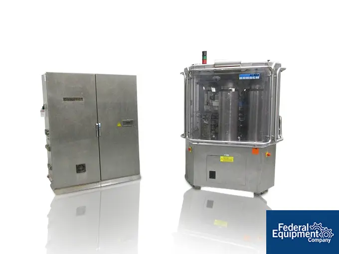 Used Korsch XL 800 rotary tablet press, 87 station. 100 Kn main compression with 100 kN pre-compression, "BB" tooled, dual sided, 13 mm max tablet diameter, 18 mm max depth of fill with single layer, bi-layer capable with 16 mm max depth of fill, 10 mm max second layer depth of fill, speeds up to 939,600 tablets/hour single layer, 469,800 tablets/hour bi-layer, with electrical panel, 480 volt, 3 phase, 60 hertz, serial# K1580003, built 2002.