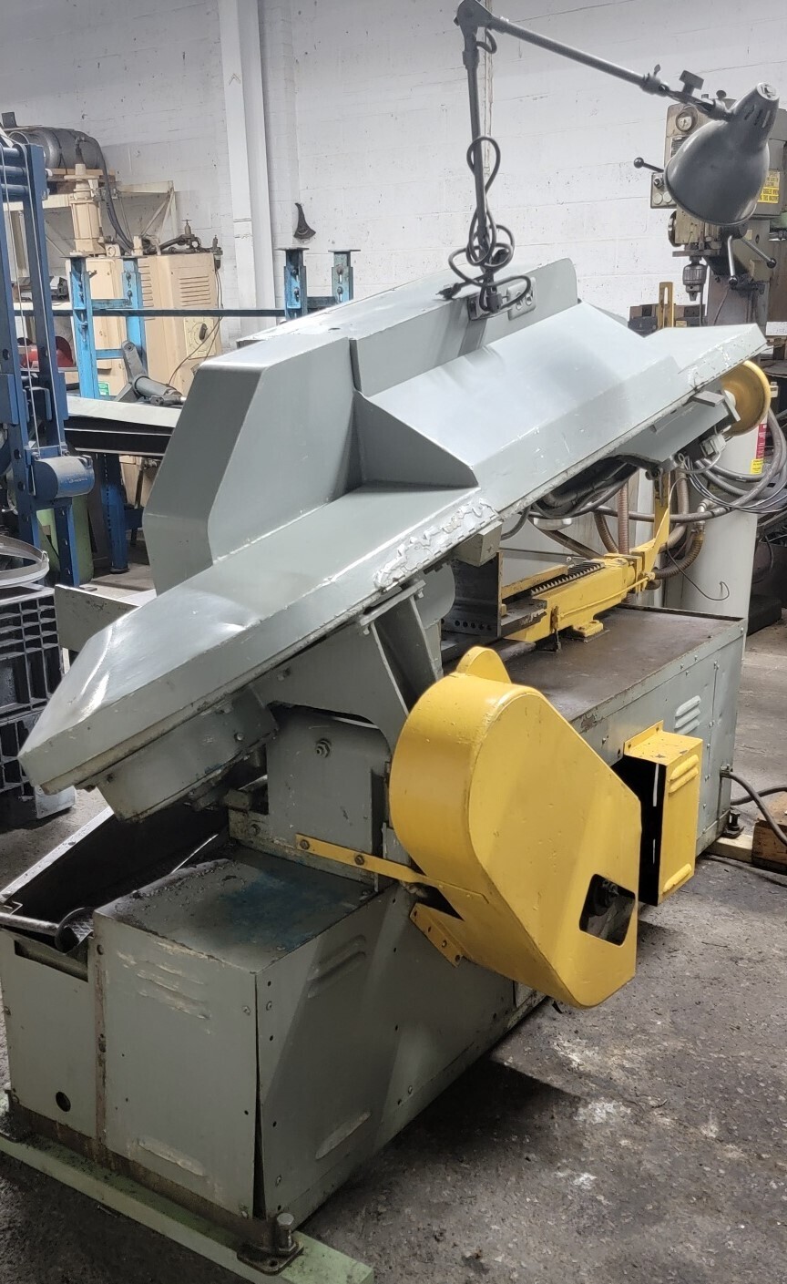 W.F. Wells 10″ x 16″ Horizontal Band Saw, L10, Inventory # 7995, Model: L10, Made in USA, Capacity:, Round:, @ 90°: 11″, @ 45°: 7 3/4″, Rectangular:, @ 90°: 10″ x 16″, @ 45°: 10″ x 8″, Weight Capacity: 2,000 lbs., Blade Speed: 70 – 380 FPM, Blade ...more