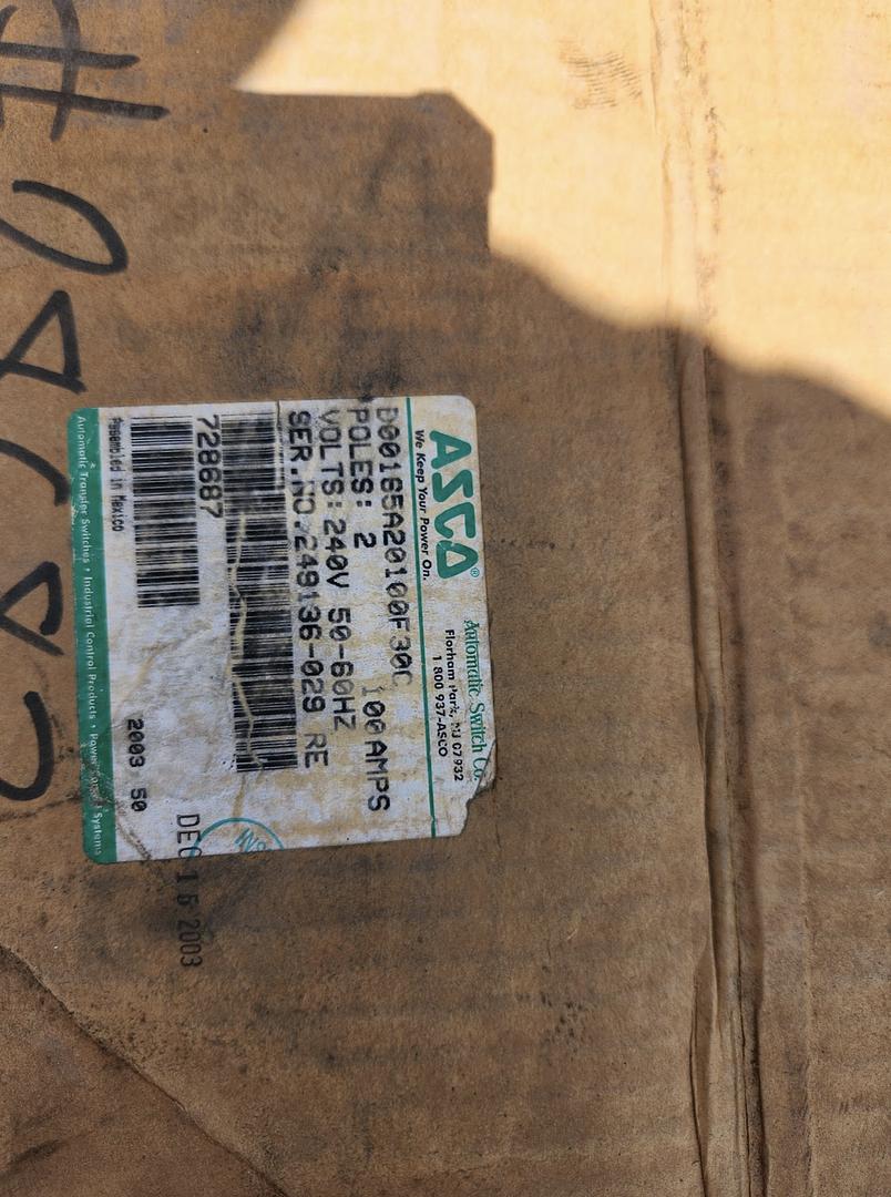 100 Amp. ASCO Automatic Transfer Switch, 1Ph, 240 Volts, unused (2 available) Manufacturer: Asco Amps: 100 Stock # S6LLST12725 Price: $1,100 USD Request Info 3 For Sale by Quantum Technology Surplus Record Dealer Since 2024 Contact Seller Shippensburg, PA Sales Dept. 484-74...> Show Seller's Phone Number 484-749-8600 Let the seller know you found their listing on Surplus Record! View More Quantum Technology 's ListingsDescription Details*Local Pickup Does Not Include any Palletization* Item Located in: Ephrata, PA. 17522'*Handling times for freight shipments average 5 days, but may vary depending on size, weight, location, and current trucking conditions. This does not include shipping time.*Series 165Single Phase 240VLooking for reliability and efficiency in your power system management? The ATS 100A 1Ph ASCO Automatic Transfer Switch ensures a seamless transition between power sources. - Suitable for 240v applications- Ideal for residential and light commercial use- Supports single-phase power systems- Ensures continuous power supply- Assures minimal downtime during power outagesWith easy installation and operation, this new surplus transfer switch is the perfect choice for safeguarding your electricity. Experience peace of mind knowing your power needs are always met, no matter what.Please be aware that item descriptions are provided as-is without any warranties or guarantees of accuracy. We strongly recommend using this content as a starting point for further research and consultation with relevant experts or authorities. We disclaim any liability for damages or losses resulting from the use or reliance on this content.We can ship international freight. Please contact us if you have any questions or issues checking out.IMPORTANT: The sale includes only items in the picture. No other accessories not in the picture are included. If you feel something is missing please reach out to us before buying. No returns will be accepted due to items not in the picture. Thanks for your understanding.The equipment is used, as such it may have some blemishes, light surface scratches not affecting operation. If you need more details about your particular equipment, please email with questions.Generators do not ship with batteries due to DOT regulations.Datacenter and computer equipment we sell does not include hard drives.. Request More Information from SellerInquire Further with Quantum Technology! "*" indicates required fieldsName*Company*Email* PhoneZip / Postal Code*QuestionMake an OfferRequests Send me a shipping quote I am interested in financingSend Copy Email me a confirmation of this inquiryBuyer Protection Use our partner Escrow.com to buy or sell equipment safelyBuyer Protection Send me info about buyer protectionThis field is hidden when viewing the formDealer Email Buyers Who Viewed This Listing Also Viewed … 100 Amp. Cummins #RA112L1, Integrated Load Center & Automatic Transfer Switch, NEMA1, 120/240 Volts, 1 phaseCategory: Transfer SwitchesSeller: Buckeye Power SystemsLocation: Cordova, TN Mfr: CumminsMODEL: RA112L1 - A051C991 | Integrated ATS & Load Center | 120/240V Single-Phase | Non-Service Rated | NEMA1 Enclosure, IN STOCK - Ready to Ship, Cummins 100A Integrated Load Center Transfer Switch, RA Series, 120/240V Single Phase, NEMA1 Enclosure, The Cummins RA Series 100A Load ...more 100 Amp. Kohler, GLS-566641-0100, automatic transfer switch, 4 wire, 480 Volts, Nema 1Category: Transfer SwitchesSeller: Quantum TechnologyLocation: Shippensburg, PA Mfr: Kohler*Local Pickup Does Not Include any Palletization* Brand: Kohler, Type: Automatic Transfer Switch (ATS) for Emergency Systems, Model: GLS-566641-0100, Serial Number: K0699371, Electrical :, Amps: 100, Volts: 480, Phase: 3, Wires: 4, Hertz: 60, Enclosure: NEMA 1 (suitable for indoor use, providing protection against ...more 100 Amp. Kohler GLS-56664, automatic transfer switch, 4 wire, 480 Volts, Nema 1, 2006Category: Transfer SwitchesSeller: Diesel-Powered.comLocation: East Earl, PA Mfr: KohlerYear: 2006Stock#: IETS-374-KH Year: 2006 Voltage: 480 Volts Phase: 3 Phase Make: Kohler Model: GLS-56664 Serial: K8687964 Hertz: 60 Hz Wires: 4 Wires Length: 36" Width: 26" Height: 15" Weight: 75 lbs Amps: 100 Amps Condition: Good-Used, Standby Application Circuit Breaker: Yes. 100 Amp. Eaton #ATC3C2X40100XSU, automatic transfer switch, 480 Volts, Nema 1, 2018Category: Transfer SwitchesSeller: Critical Infrastructure Group LLCLocation: Sparks, NV Mfr: EatonYear: 2018Manufacturer Eaton Model # ATC3C2X40100XSU Enclosure Type NEMA1 Equipment Type ATS Rating (Amps) 100A Voltage 480V Frequency 60 Hz Year Manufactured 2018 Status In Stock. 100 Amp. Zenith #ZTSL10EC-7 Automatic Transfer Switch, 480 Volts 60 Hz. 3 phaseCategory: Transfer SwitchesSeller: Equipment Recovery CorpLocation: Willoughby, OH Mfr: ZenithBrand: ZENITH, Condition: USED, "AS-IS", Model: ZTSL10EC-7, Part: -, Serial: 1304011.1.3, Power Rating: 480 V, 100 A, 60 HZ, 3 PH, SYSTEM VOLTS: 277/480 V, Weight: 142 LBS. W/ SKID, Category: SWITCHES, Shipping Dimensions: 36" x 36" x 20", ERC #: MO-5029, Job #: 122, Additional Notes: -.Share × "*" indicates required fieldsYour Name*Your Email* Recipient's Email* Note to Recipient
