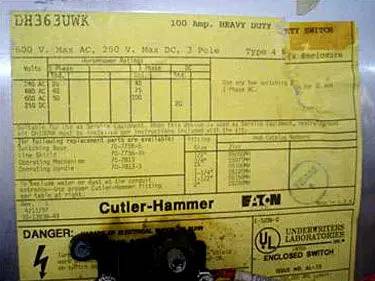 100 Amp. Cutler Hammer, Heavy Duty Safety Switches, 100 HP, 600 VAC, 250 VDC Manufacturer: Cutler Hammer Amps: 100 Stock # DTTC2138-01 Request a Quote 8 For Sale by Genemco Surplus Record Dealer Since 2023 Contact Seller Hearne, TX Erik McMillan 737-25...> Show Seller's Phone Number 737-258-8446 Let the seller know you found their listing on Surplus Record! View More Genemco 's ListingsDescription Cutler-Hammer Heavy Duty Safety Switch- 100 Amp. Max. Hp: 100. Max. power supply: 600 VAC/250 VDC. Stainless steel enclosure. Overall dimensions: 1 ft. L x 8 in. W x 1 ft. 11 in. H. Request More Information from Seller See this Safety Switches listing on Genemco's websiteGet Your Price from Genemco! "*" indicates required fieldsName*Company*Email* PhoneZip / Postal Code*QuestionMake an OfferRequests Send me a shipping quote I am interested in financingSend Copy Email me a confirmation of this inquiryBuyer Protection Use our partner Escrow.com to buy or sell equipment safelyBuyer Protection Send me info about buyer protectionThis field is hidden when viewing the formDealer Email Buyers Who Viewed This Listing Also Viewed … 100 Amp. Siemens type VBII, fusible heavy duty safety switch, 600 VoltsCategory: Safety SwitchesSeller: DH GriffinLocation: Greensboro, NC Mfr: Siemens 100 Amp. Square D #H663AWK, Safety Disconnect Switch, 600 Volts 75HP 6P Type 3R 5 12 EnclCategory: Safety SwitchesSeller: OK Sales IncLocation: Burlington, NC Mfr: Square D 100 Amp. General Electric, Disconnect Switch, THN3363J, 3 Pole, 600 V, 100 HP, Nema 12Category: Safety SwitchesSeller: Powerhouse Systems LlcLocation: Niota, TN Mfr: General Electric 100 Amp. General Electric #10.THN3363SS, Safety Switch, 100 HP, 600 VAC, 250 VDCCategory: Safety SwitchesSeller: GenemcoLocation: Hearne, TX Mfr: General ElectricElectric Safety Switch- 100 Amp. Model: 10. THN3363SS. Max Hp: 100. Max. power supply: 600 VAC/250 VDC. Stainless steel enclosure. Overall dimensions: 1 ft. 3 in. L x 8-1/2 in. W x 2 ft. 2 in. H. 100 Amp. Siemens, Heavy Duty Double Throw Safety Switch, 3/1 phase, 15/40/20 HP, 240 VAC, 250 VDC, Type 1 IndoorCategory: Safety SwitchesSeller: Powerhouse Systems LlcLocation: Niota, TN Mfr: SiemensShare × "*" indicates required fieldsYour Name*Your Email* Recipient's Email* Note to Recipient