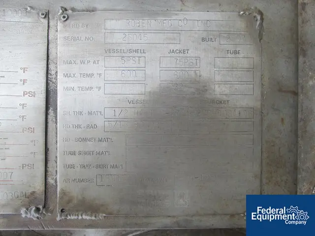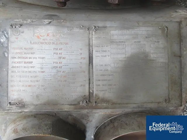 100 gallon 5 psi, Roben Stannic tank, #2733-10 Manufacturer: Roben Gallons: 100 Pounds per Square Inch: 5 Stock # 2733-10 Request a Quote 8 For Sale by Federal Equipment Company Surplus Record Dealer Since 1965 Contact Seller Cleveland, OH Sales or Contact Rep. 866-74...> Show Seller's Phone Number 866-740-5490 Let the seller know you found their listing on Surplus Record! View More Federal Equipment Company 's ListingsDescription Roben Stannic tank, 100 gallon hastelloy C-276, vessel 5 psi at 600 F, carbon steel jacket 75 psi at 600 F, National Board #10009, Serial #26015. Request More Information from SellerGet Your Price from Federal Equipment Company! "*" indicates required fieldsName*Company*Email* PhoneZip / Postal Code*QuestionMake an OfferRequests Send me a shipping quote I am interested in financingSend Copy Email me a confirmation of this inquiryBuyer Protection Use our partner Escrow.com to buy or sell equipment safelyBuyer Protection Send me info about buyer protectionThis field is hidden when viewing the formDealer Email Buyers Who Viewed This Listing Also Viewed … 100 gallon 5 psi, Lowe-Mar Stannic tank, #2733-11Category: Pressurized Carbon Steel TanksSeller: Federal Equipment CompanyLocation: Cleveland, OH Mfr: Lowe-MarLowe-Mar Stannic Tank, 100 gallon hastelloy C-276, vessel 5 psi at 600 F, carbon steel jacket 75 psi at 600 F, serial #96048. 100 gallon 25 psig, 24" ID x 48" L, Monel Alloy Pressure Vessel, 320°FCategory: Pressurized Carbon Steel TanksSeller: EcReCon Inc.Location: Pedericktown, NJ, 100 Gallon Monel alloy pressure vessel. Top outlets: (1) 10, (2) 3, (1) 2, (1) 1. Tank has CS Jacket.,., Gallons. 100 gal, PSIG. 25, ID - Inches. 24 in, Length. 4' 0, Temp (F). 320, Material. Monel, Vert/Horiz. V. 95 gallon 4000 psig, 24" x 79", Fiba, ASME, (4 available)Category: Pressurized Carbon Steel TanksSeller: CCH Equipment CoLocation: Waxahachie, TX Mfr: Fiba 100 gallon 100/FV psig, 24" ID x 54" L, QCIW INC #R785P, Vertical Carbon Steel Vessels, 710°FCategory: Pressurized Carbon Steel TanksSeller: EcReCon Inc.Location: Pedericktown, NJ Mfr: Qciw IncYear: 1975, (3) 100 Gallon Vertical Carbon Steel vessels rated 100PSI/Full Vacuum. 24" Dia.x 4'6" T/T. Thickness: Shell.25", Heads.312". Built by QCIW. Each have NB#'s., 1975 QCIW INC R7582P, Gallons. 100 gal, PSIG. 100/FV, ID - Inches. 24 in, Length. 4'6", Temp (F). 710, Material. Carbon Steel, Vert/Horiz. V ...more 105 gallon 3000 psig, 36" x sphere, Valvcon, ASME, NBCategory: Pressurized Carbon Steel TanksSeller: CCH Equipment CoLocation: Waxahachie, TX Mfr: ValvconShare × "*" indicates required fieldsYour Name*Your Email* Recipient's Email* Note to Recipient