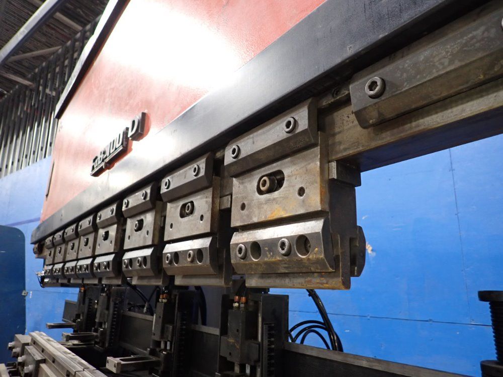 Overall Bed Length: 98: inches, Press Capacity: 110 Ton, Type of Press Force: Hydraulic, Distance Between Housings: 80: inches, Number of CNC Controlled Axis: 2, Stroke Length: 3.9: inches, Open Height: 14.7: inches, Throat Depth: 15.9: inches.