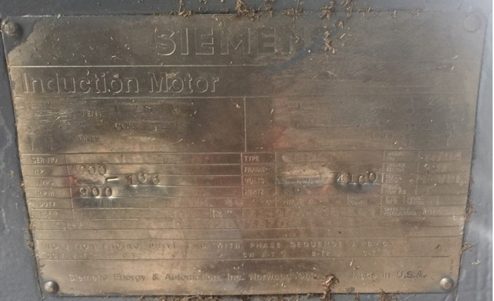 1000 HP 889 RPM Siemens, Frame 6811S, weather protected enclosure type 2, SB, 2300/4000 Volts