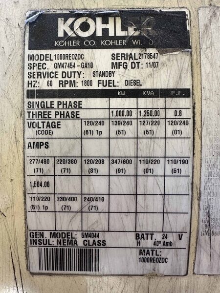Manufacturer Cummins Equipment Type Diesel Generator Model Family KTA50G Serial Number 33108122 Capacity (kW) 1000kW Voltage 2400/4160V Phase 3 Frequency 60 Hz Year Manufactured 1983 Condition Used Status In Stock.