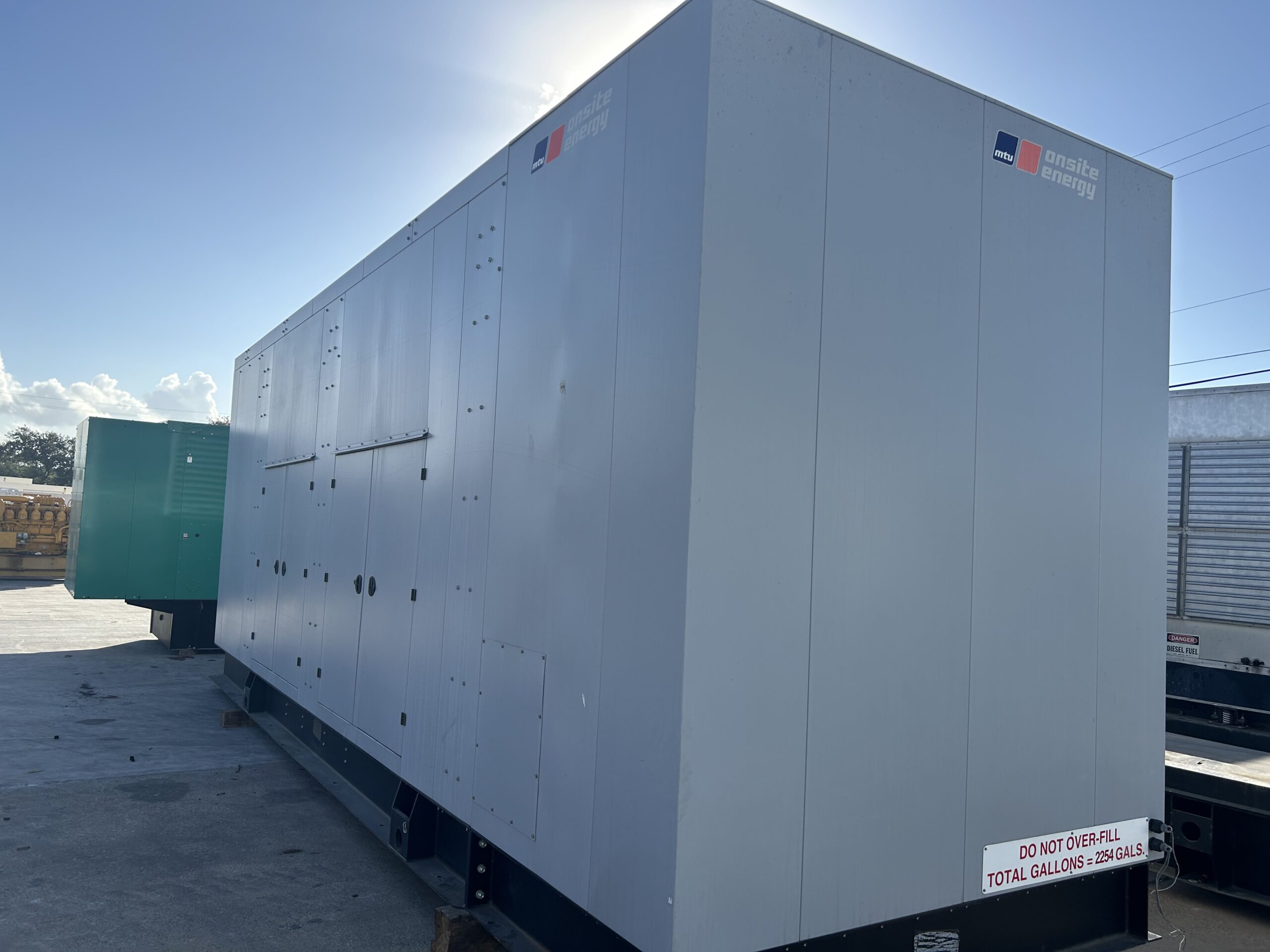 1000kW MTU 16V2000 DS1000 1000 kW, 208 V, 3 phase, 60 Hz CAN BE RESTRAPPED TO 480v Sound attenuated enclosure with CA spec 24 hour, 2200-gallon subbase tank Less than 500 hours since new in 2019