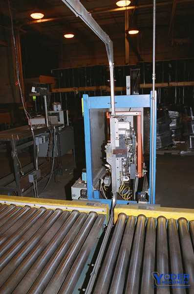 10000 lb. Pro-Eco, banding line, 72" outside dimension, downlayer, 2-index roll station w/ manual banding, conveyors, stacker
