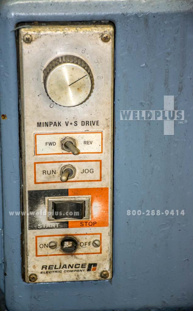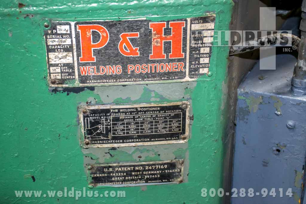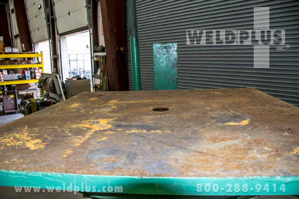10,000 Lbs Capacity Welding Positioner with 360° Variable Speed Power Rotation, T - Slotted Square Table and Manual Peg Type Table Elevation., Overall Table Dimensions: 48” X 48”, Table Weight at 12”: 10,000 Lbs, Table Weight at 18”: 7,700 Lbs, Table Weight at 24”: 6,900 Lbs, Table ...more