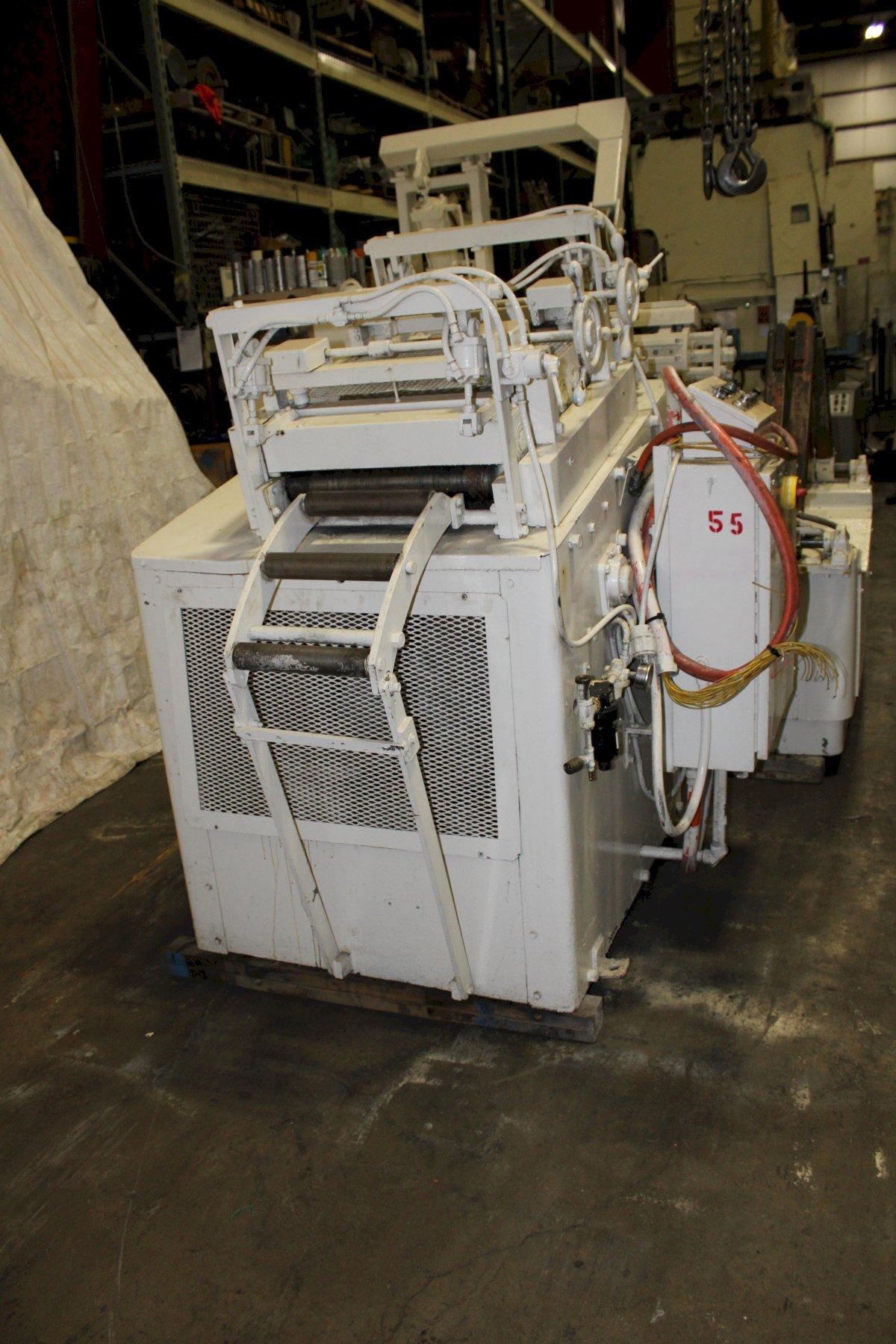 10000 lb. Rowe #10024-DSJ, servo feed line, 24" x .032" stock, pilot release, 7-rolls, entry & exit pinch rolls w/ air lift, pendant, 2007