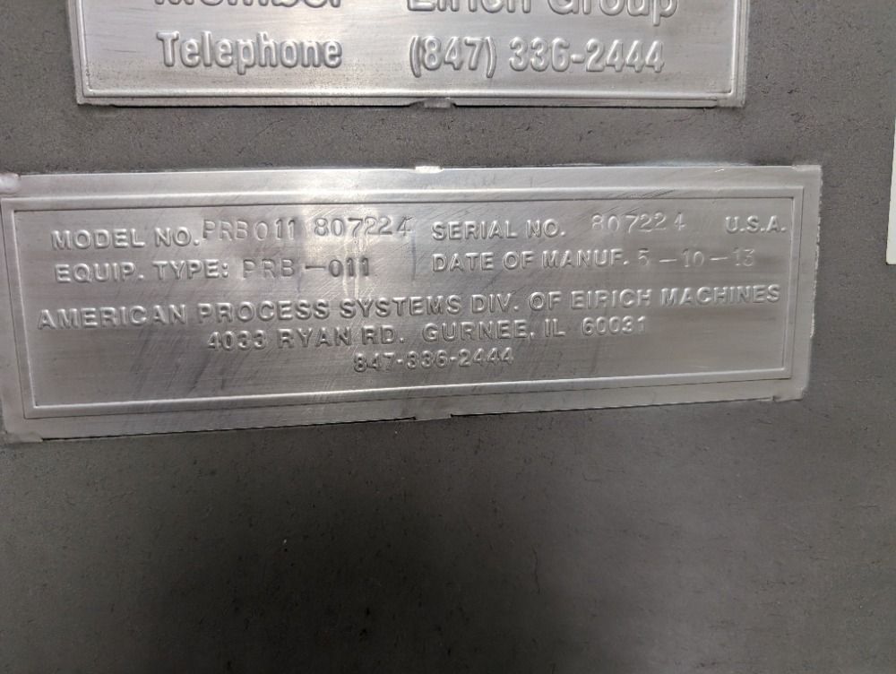 Used 11 Cu Ft American Process Paddle Ribbon Blender, Model Prb-011, Stainless Steel Construction, Approximately 21" Wide X 48" Long Trough, Paddle Ribbon Agitator With Outside Paddles And Inside Ribbon, Shaft Mounted Gearbox With 7.5 Hp, 230/460 Volt Motor Drive, Serial# 807224, Built 2013.