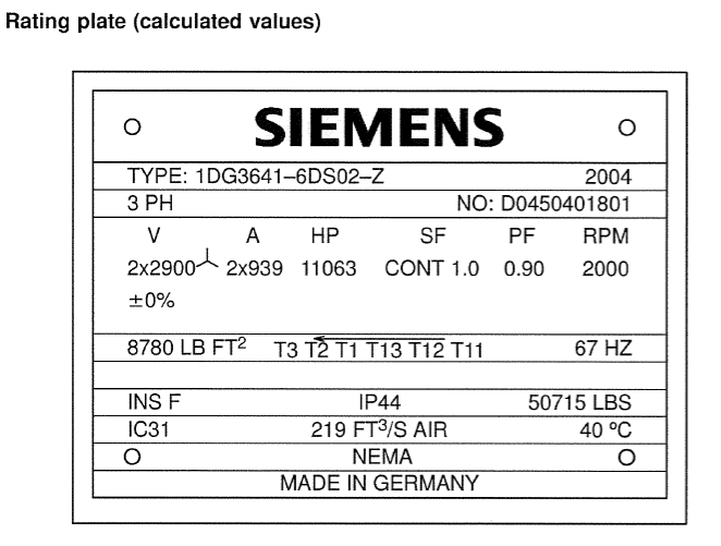 - Unused surplus synchronous motor, - 2 units available, - Purchased as a standby spare, never installed, - Dual frequency: 50 or 60 Hz, - 936DO Frame, - Type TS, - 3300 Volt, - 7,500 kW (10,000 HP), - Insulation class F, - Power factor 1.0, - Self ventilation enclosure, - Variable speed operation, Dual frequency : ...more
