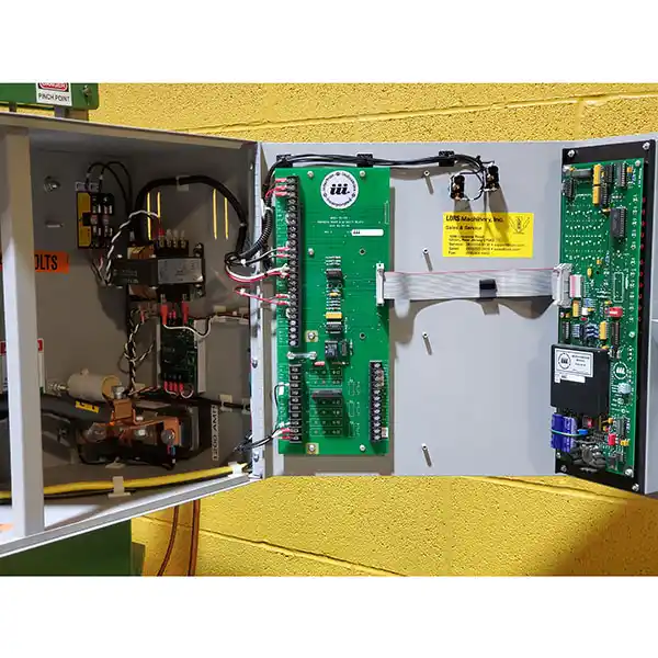 Inventory No. 0924-057-0002 Manufacturer Ferranti Sciaky Model No. PMM 2TCM Name Spot Welder Arrival Date 08-22-2025 Dimensions L x W x H (inches) 146 x 72 x 121 Capacity 100 KVA Electrical 3/60/460 Weight (lb.) 19700 Category Welding Condition Used Available Quantity 1 Serial No. 6180R Make Year 1989.