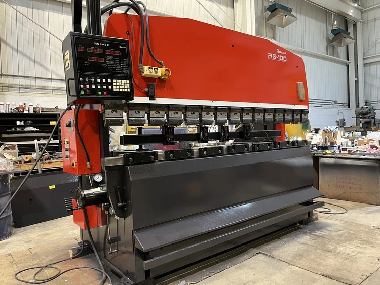 110 Ton, Amada #RG-100, hydraulic press brake, 10' overall, 96" between housing, 3.93"stroke, 3-Axis, 1981