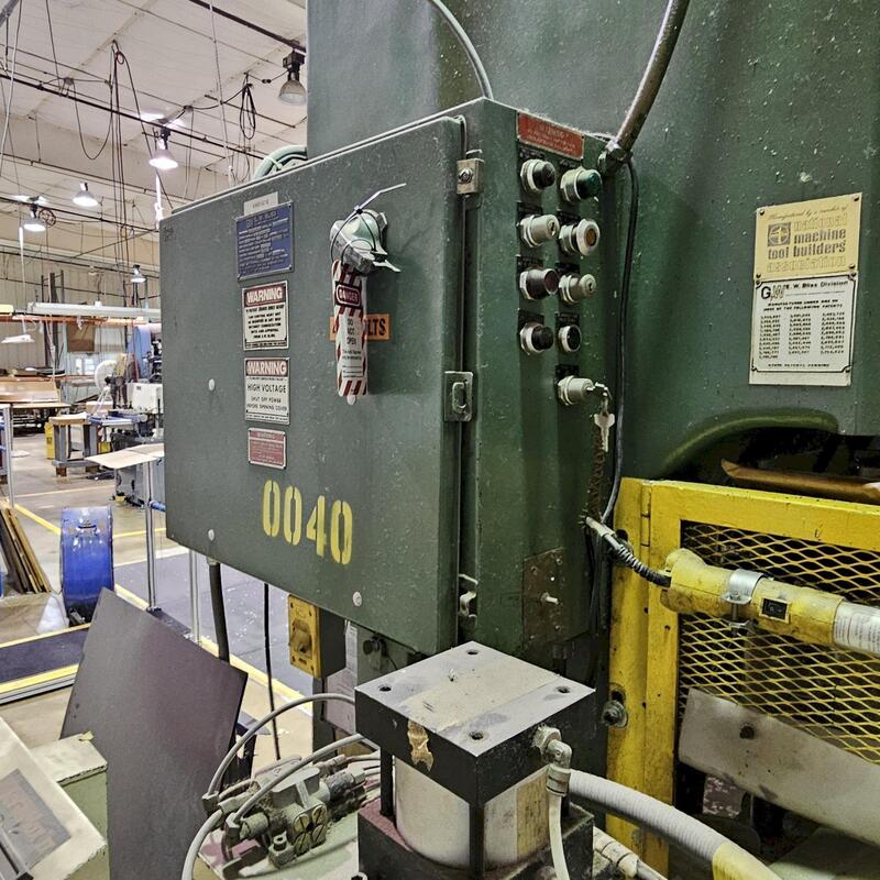 (1) Used 110 Ton Bliss Model C-110 OBI Press, Capacity: 110 Ton, Stroke: 6", Shut Height to Bed: 21" (SDAU), Slide Adjustment: 4", Bed Area: 42"LR x 27"FB, Slide Area: 27.5"LR x 21"FB, Speed: 80 SPM, Capacity: 110 Ton, Stroke: 6", Shut Height to Bed: 21" (SDAU), Slide Adjustment: 4", Bed Area: 42"LR x 27"FB, Slide ...more