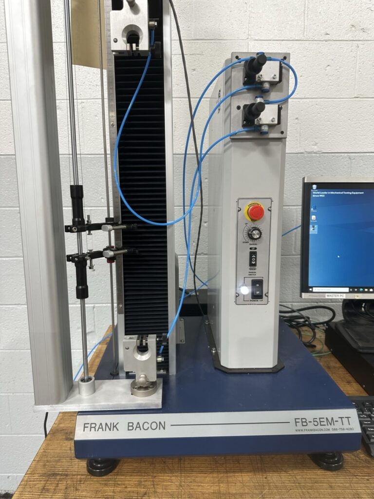 1125 lbf. (5kN) Frank Bacon #FB-EMS-TT, Single Column Tension and Compression Testing Machine with Precision Load Cell, new Manufacturer: Frank Bacon Model: FB-EMS-TT lb.: 1125 Stock # FB-5EMS-TT Request a Quote 8 Play VideoFor Sale by Frank Bacon Machinery Sales Surplus Record Dealer Since 1956 Contact Seller Warren, MI Sales Team 586-75...> Show Seller's Phone Number 586-756-4280 Let the seller know you found their listing on Surplus Record! View More Frank Bacon Machinery Sales ' ListingsDescription NEW 1,125 lbf (5kN) Single Column Frank Bacon Model FB-5EMS-TTNEW 1,125 lbf (5kN) Capacity Single Column Frank Bacon Tension and Compression Testing Machine with Precision Load Cell. Model FB-5EMS-TTSPECIFICATIONS: Tension Testing Opening (Less Tooling): 38" Compression Testing Opening (Less Tooling): 38" Testing Stroke: 38" Testing Speed (IPM): .00002 – 20 Crosshead Adjusting Speed (IPM): 20 Load Frame Dimensions: 20" x 20" x 58" Electrical Requirements (V,Hz,PH): 120, 60, 1 EQUIPPED WITH: • Computer with Keyboard & Mouse • 24" LED-Backlit LCD Color Monitor or Better & Manual • Microsoft Windows 10 Professional, Workstation • Frank Bacon MTGenius, Material Testing Software for Data Acquisition (Load, Position & 2 Strain), Analysis and Computer Controlled Testing with Manual. • Frank Bacon MTGenius, Micro Console for Sensor Excitation and Analog/Digital Signal Processing with USB Cable. • Electronic Material Testing Control System in Custom Cabinet/Desk with PC Controls and Crosshead Jog Controller. • Precision AC Servo Motor and Drive • 5kN Tension & Compression Load Cell • Upper and Lower Quick Release AdaptorsFOB Warren, MINEW, Calibrated and Certified Industry Leading 2 Year Parts and Labor Warranty30 Day Satisfaction Guarantee Return Privilege ISO 17025 Accredited CertificationHundreds of Grips, Fixtures, and Accessories Available | #FB-5EMS-TT DOWNLOAD SPEC SHEET Request More Information from SellerGet Your Price from Frank Bacon Machinery Sales! "*" indicates required fieldsName*Company*Email* PhoneZip / Postal Code*QuestionMake an OfferRequests Send me a shipping quote I am interested in financingSend Copy Email me a confirmation of this inquiryBuyer Protection Use our partner Escrow.com to buy or sell equipment safelyBuyer Protection Send me info about buyer protectionThis field is hidden when viewing the formDealer Email Buyers Who Viewed This Listing Also Viewed … 1125 lbf. (5kN) Instron #4465, Table Top Precision Two Ball Screw Electro-Mechanical Tension and Compression Testing Machine FrameCategory: Compression TestersSeller: Frank Bacon Machinery SalesLocation: Warren, MI Mfr: InstronModel: 44651,125lbf (5kN) Instron 4465 (1) Reconditioned 1,125 lbf (5 kN) Capacity Instron, Model 4465, Table Top Precision Two Ball Screw Electro-Mechanical Tension and Compression Testing Machine Frame., Instron 4465, Tension Testing Opening (Less Tooling): 48", Compression Testing Opening (Less Tooling): 48", Distance Between ...more 1125 lbf. (5kn) MTS Sintech #1/S, electro-mechanical unispace tension & compression testing machine, serial #1S/20996/178Category: Compression TestersSeller: Frank Bacon Machinery SalesLocation: Warren, MI Mfr: Mts SintechModel: 1/S1,125lbf (5kN) MTS Sintech 1/S 1,125lbf (5kN) MTS Sintech 1/S, (1) Reconditioned 1,125 lbf (5 kN) Capacity MTS Sintech, Model 1/S, Electro-Mechanical Unispace Tension, and Compression Testing Machine S/N: 1S/20996/178, MTS Sintech Model 1/S, Tension Testing Opening (Less Tooling): 46", Compression Testing Opening ...more 11250 lbf. Instron #2404, bench type unispace tension & compression testing, 50 kn static load cell,rebuilt 2009Category: Compression TestersSeller: Mohawk Machinery IncLocation: Cincinnati, OH Mfr: InstronModel: 2404Year: 200911250 LBF INSTRON "4204" BENCH TYPE UNISPACE TENSION, AND COMPRESSION TESTER, REBUILT 2009, REBUILD SERIAL NO 09-13283, MODEL 4204, 11250 LBF INSTRON "4204" BENCH TYPE UNISPACE TENSION, AND COMPRESSION TESTER, REBUILT 2009, REBUILD SERIAL NO 09-13283, MODEL 4204, UPDATED ELECTRONIC CONSOLE WITH, ADMET CONTROLS ...more ATS #1105C, Compression Tester, 5000 lbs. capacity, 42" crosshead travel, 20" nominal horizontal clearance, 115 VCategory: Compression TestersSeller: Machinery & Equipment CoLocation: Brisbane, CA Mfr: AtsModel: 1105CATS model 1105C Universal Testing Machines compression tester, capacity rated for up to 5,000 pounds. Twin-screw drive, performing tension, compression, shear, and flexure tests. Serial number 9024397-10-90, crosshead travel 42", nominal horizontal clearance 20", Digital Display, 115 Volts, single phase, 60 Hz. ...more Instron #4201 Series IX, compression & force tester, 10 newton +/-100 newton & 1 Kn load cells, 2-sets grippers, controls, #46552Category: Compression TestersSeller: Federal Equipment CompanyLocation: Cleveland, OH Mfr: InstronModel: 4201Used Instron compression and force tensile tester, series IX, model 4201, with 10 newton, +/- 100 newton and 1 Kn load cells, with (2) sets of grips, (1) set 10 lb weights and controls, serial# 3380.Share × "*" indicates required fieldsYour Name*Your Email* Recipient's Email* Note to Recipient