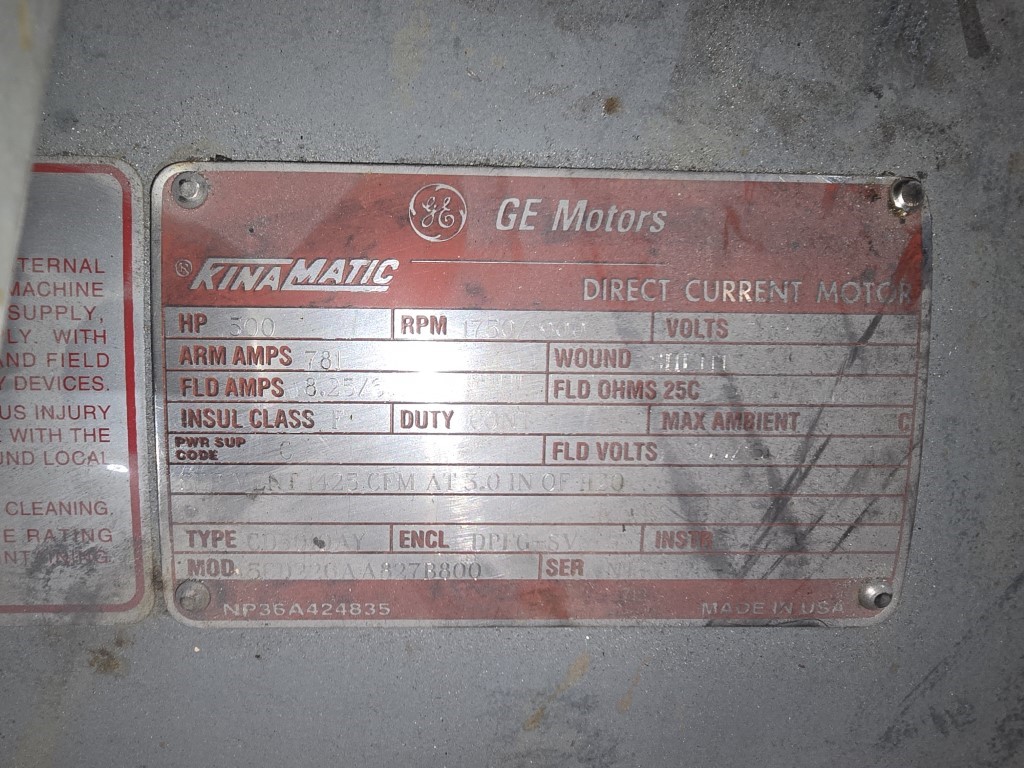 - 500 HP GE DC Motor, Type: CD5010AY, 1750/1900 RPM