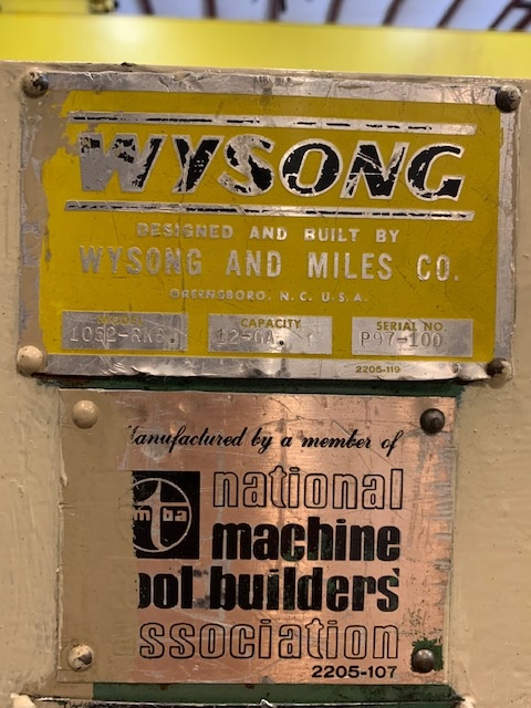 52" X 10 GA. WYSONG "1052" MECHANICAL POWER SQUARING SHEAR - 24" manual back gauge - air clutch - holddowns, Serial No P58-238, Model 1052, 52" X 10 GA. WYSONG MECHANICAL POWER, SQUARING SHEAR, Serial No P58-238, Model 1052, 24" Rear Operated Manual Back Gauge, Air Clutch - Electric Foot Switch, Spring Actuated ...more