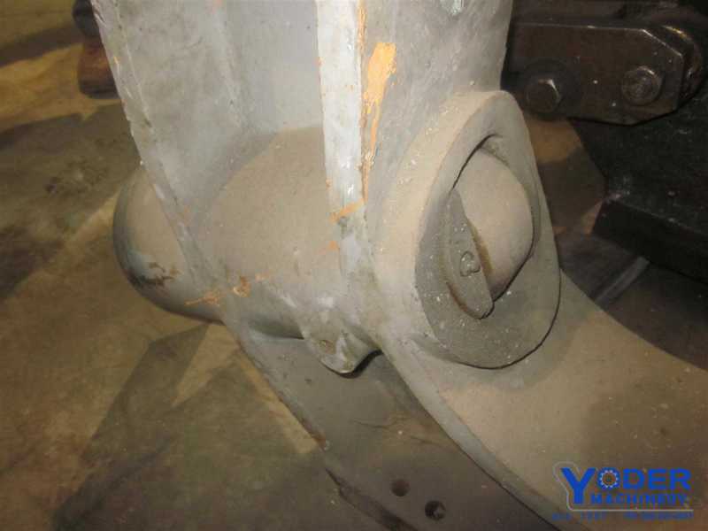 Spec Sheet:, Steady Rest, USED, Steady Rest, Measured Dimensions, Height: 28 (max), Width: 26 (max), Hole Diameter: 12.5, Hole Radius: 6.25, Base Width: 22-5/8, Center Height: 14 (from base to center of hole), No Clamp., Pallet Dimensions: 36x36x13in / 188lbs as shown.