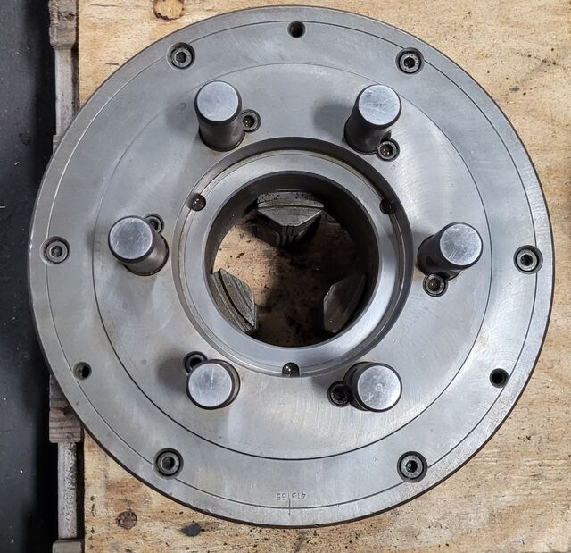Spec Sheet:, 12in 6 Jaw Buck Chuck 5127 L1 Mount, USED, Brand: Buck, Lathe Chuck, Stamped Number: 5127, Jaws: 6, Overall Diameter: 12in, Center Hole: 3-1/4", Mount Type L1 Mount, Key slot - 5/8", Comes w/ Chuck Key.