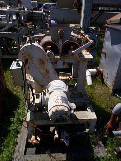 Lehman 2-Roll Flaking Mill - 12 diameter x 12 wide rolls, cored for steam. Includes a 15 HP gearhead-driven motor. Designed for vegetable oilseed and grain flaking. Serial #1338.