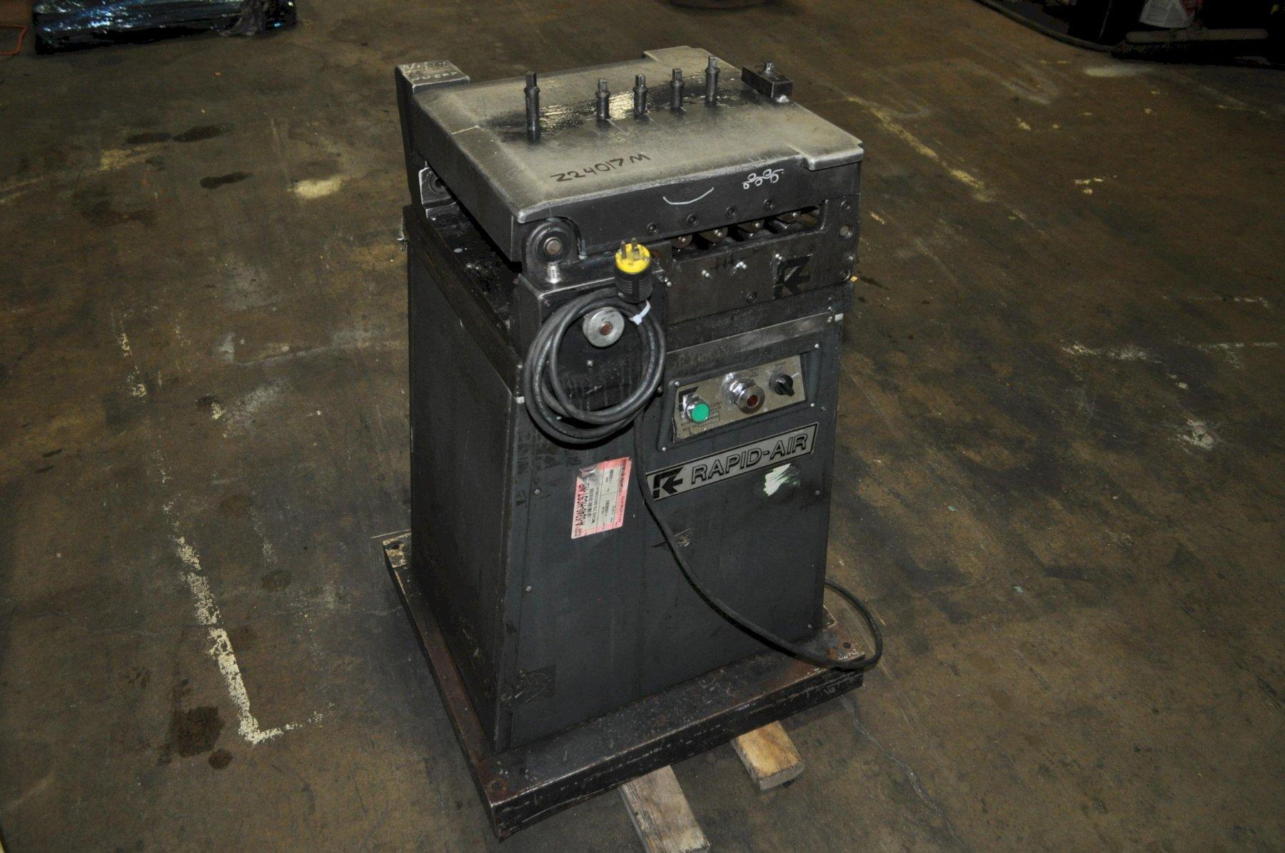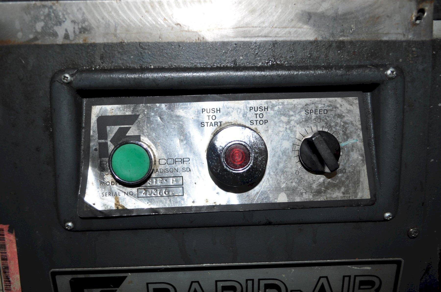 Used RAPID AIR SBX12 Sheet & Strip Straightener. Ideal for handling material up to 12.0" wide and 0.06" thick. Perfect for those seeking reliable equipment at a great value., Spec Sheet, RAPID AIR SBX12, Dimensions. 26x49x55, Weight. 336lbs.