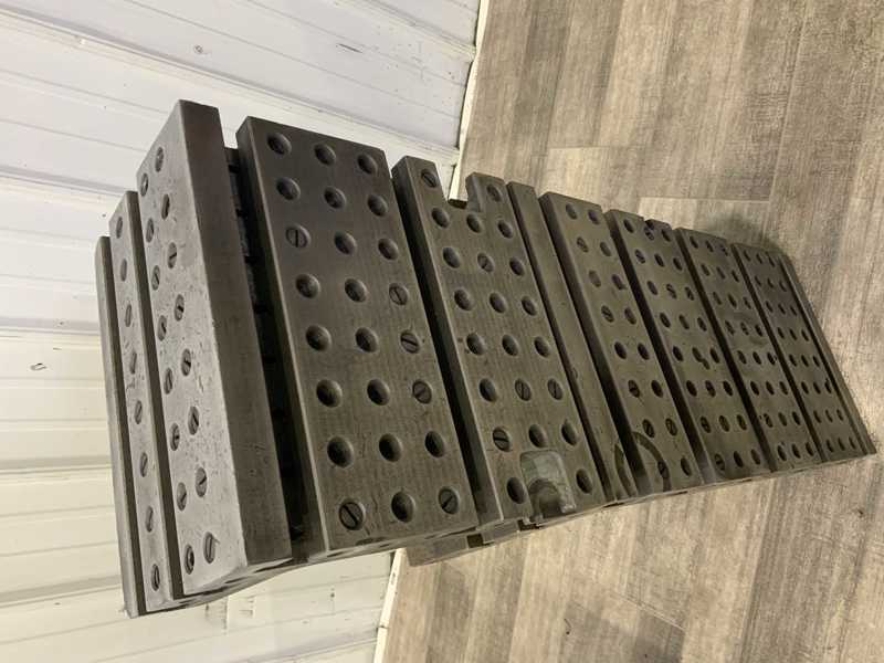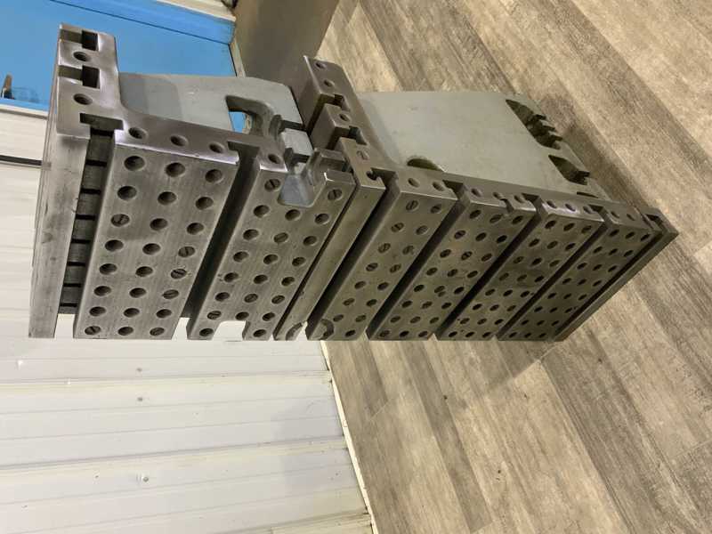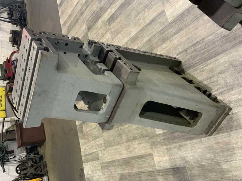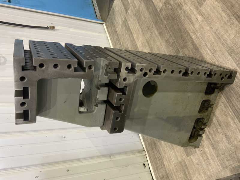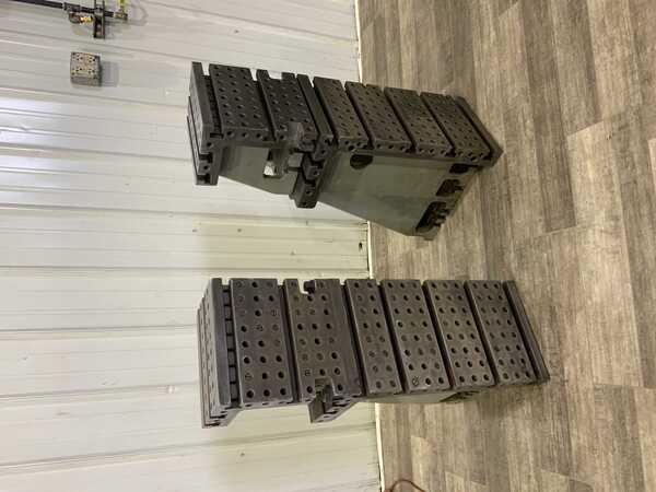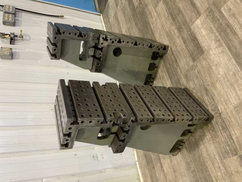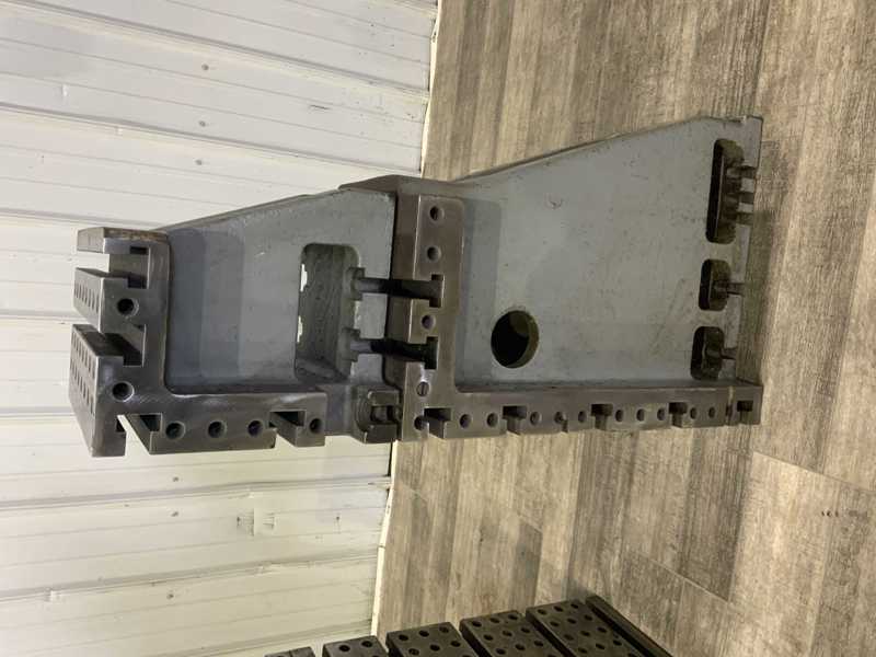Stock Number: ET-5623, (2) 69″ High Angle Plates, Cast Construction, Face: 12″ W X 69″ H, Face thickness: 3″, Face has 7 T-Slots, Base Dimension: 12″ W X 30″ D, Base thickness: 3″, Top: 12″ W x 20″ D, Top has 2 T-Slots, Location: Wixom, MI.