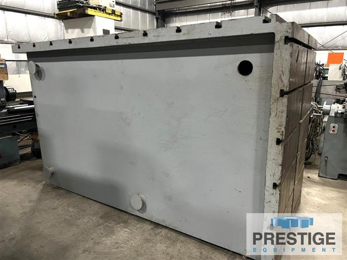 LENGTH OF PLATES. 118", HEIGHT OF PLATES. 98"', DEPTH OF BASE. 55-1/2", FACE THICKNESS. 3-1/4", NUMBER OF T SLOTS., T SLOT WIDTH AT TOP. 1-1/8", T SLOT DEPTH. 1-7/8", T SLOT WIDTH AT BOTTOM. 2", T SLOT CENTERS. 9-1/2", CASTION CONSTRUCTION. YES.