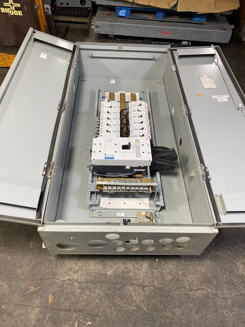 WE CAN SHIP THIS ITEM!, Eaton PRL4 Panelboard 1200A 480/277V 3R Encl PDG53M1200E4RN 1200 Amp CAN SHIP, Brand: Eaton Model: PRL4 Type: Panelboard 1200 Amp 480/277V 3 PhaseType 3R EnclosureMain Breaker: PDG53M1200E4RN(1qty) PDG22F0100TFFL(11qty) PDG22F0150TFFLMounting tabs on back need replacing.