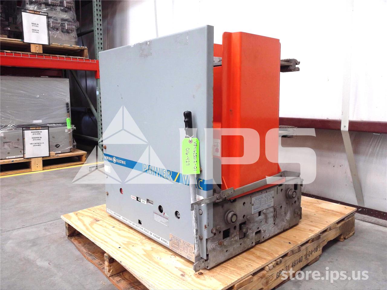 Brand: GE, Condition: USED, "AS-IS", Model: VB 7.2-500-3, Type: VACUUM, Serial: 0315A1916-001-13, Charged: 357, Power Rating: 1200 AMP, 8.25 KV, 60 HZ, 95 KV IMPULSE WITHSTAND, 33 KA RATED SHORT CIRCUIT AMPS, 125 VDC, Weight: APPROXIMATELY 550 LBS., Category: AIR / VACUUM BREAKERS, ERC #: MO-2630, Job #: 065 ...more